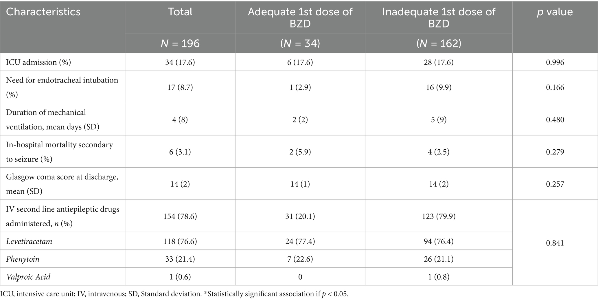 Conclusion: BZD underdosing in SE management remains widespread, with only 17% of patients receiving guideline-adherent initial doses. Although our study did not demonstrate significant differences in clinical outcomes based on dosing adequacy, implementation of institution-specific protocols and focused educational initiatives on weight-based BZD administration may improve guideline adherence in SE management.