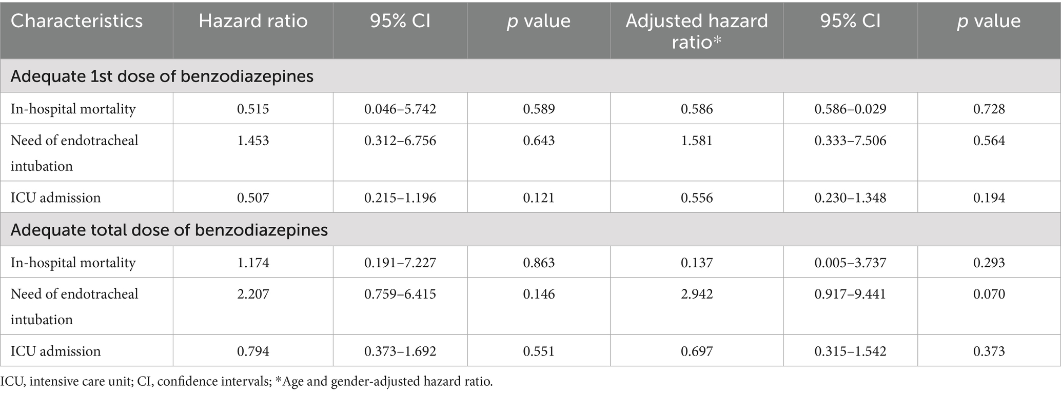 Table 3. Hazard ratio of mortality, need of endotracheal intubation, and ICU admission with guidelines adequate first and total dose of BZD.