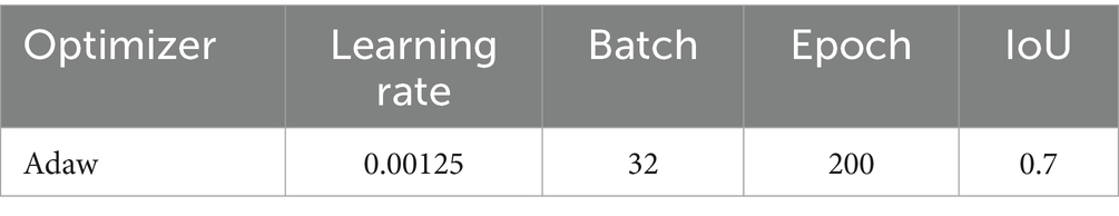 The experiment uses windows operating system, CPU model is 12th Gen Intel(R) Core(TM) i5-12400F, GPU model is NVIDIA GeForce GTX4060 graphics card, 8G RAM, and the deep learning framework chooses pytorch-2.4.1, cuda-12.4, and python-3.9.21. The model hyperparameters are set as shown in Table 1. The model hyperparameters were set as shown in Table 1.