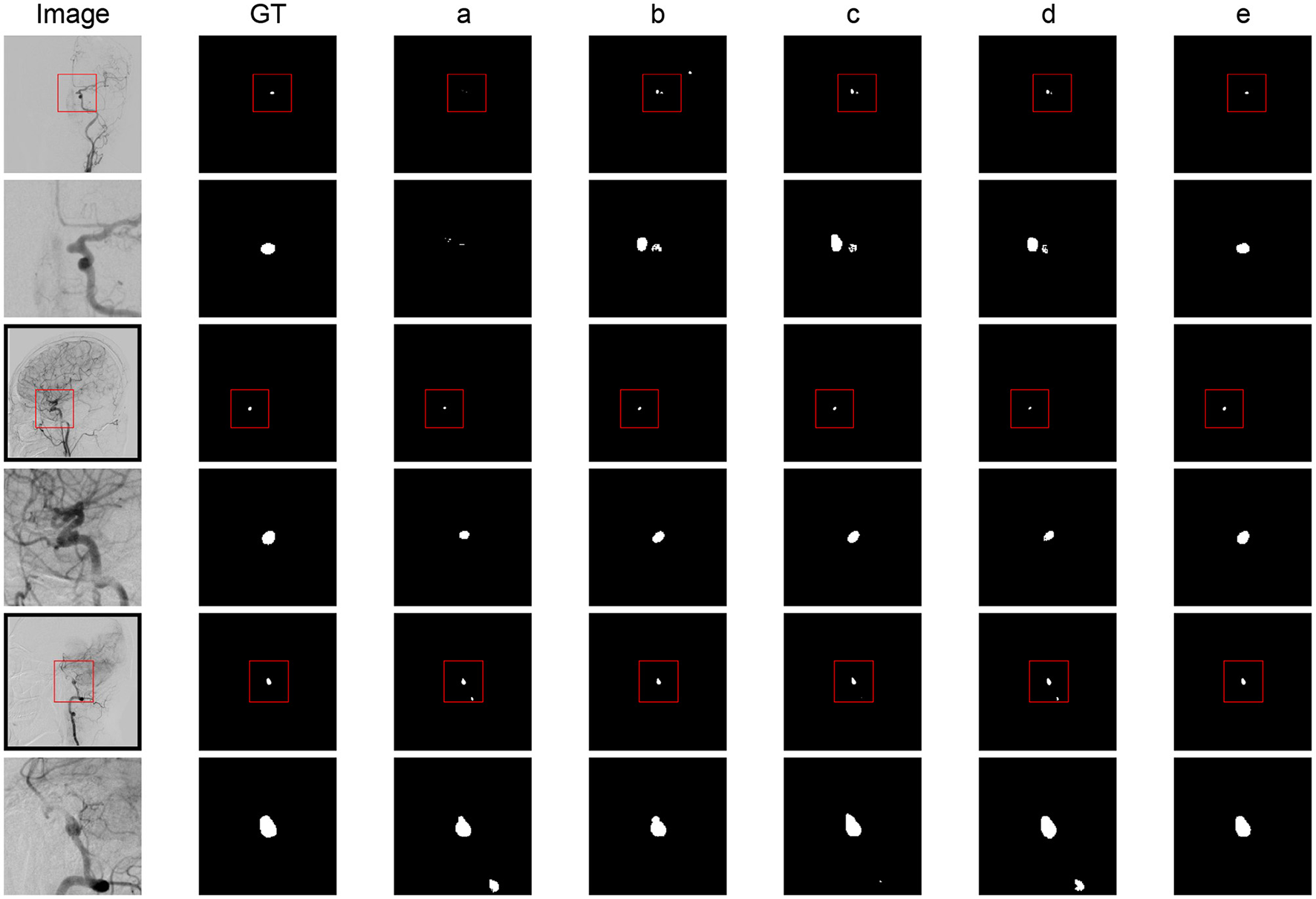 Our proposed SDAN significantly improves the accurate segmentation of intracranial aneurysms in DSA images beyond existing medical image segmentation models. The model solves the problems of small intracranial aneurysms that are not easily segmented accurately, over-segmentation caused by the similarity of intracranial aneurysms and ring vessels, and under-segmentation caused by the overlap of neighboring vessels.