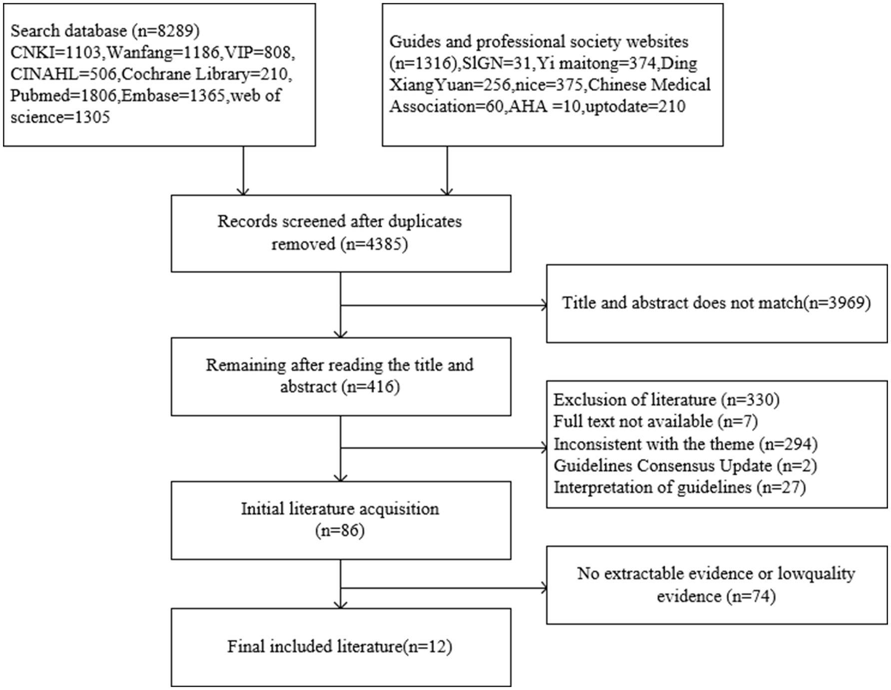 Exclusion criteria were as follows: (i) Literature type was conference abstract, guideline interpretation, research plan/proposal or the old guide that has been replaced. (ii) Literatures with failed quality evaluation.
