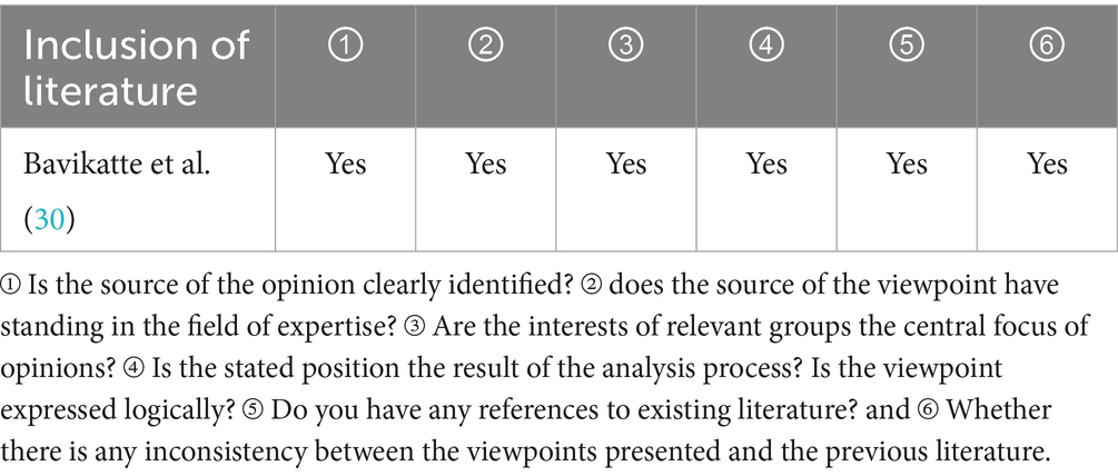 One expert consensuses (30) from CINAHL was included in the study. The details are shown in Table 4.