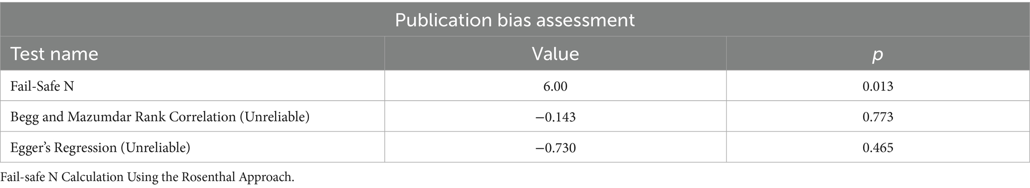 27. Fragkos, KC, Tsagris, M, and Frangos, CC. Publication bias in meta-analysis: confidence intervals for Rosenthal’s fail-safe number. Int Sch Res Notices. (2014) 2014:825383. doi: 10.1155/2014/825383