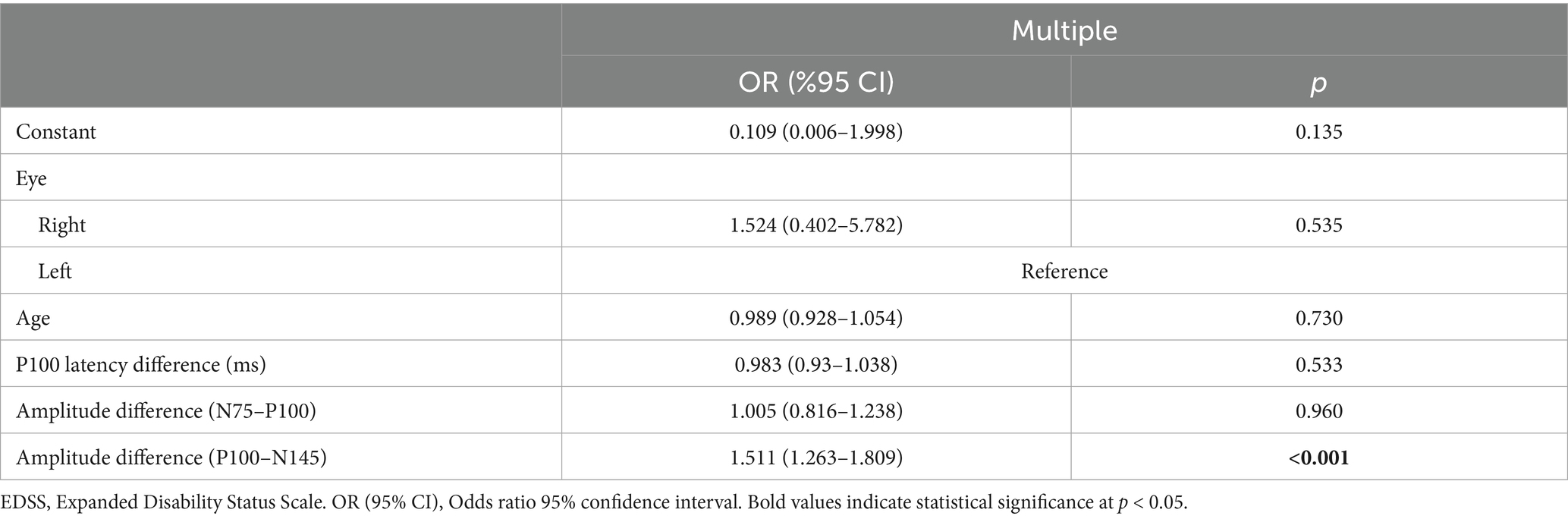 Table 2. Regression analysis results for the EDSS variable at the time of the first VEP assessment.