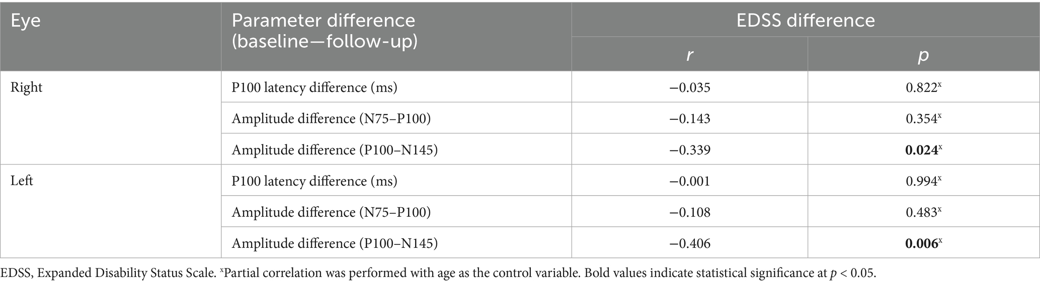 Table 4. Correlation between eye-specific VEP parameter changes and EDSS difference.