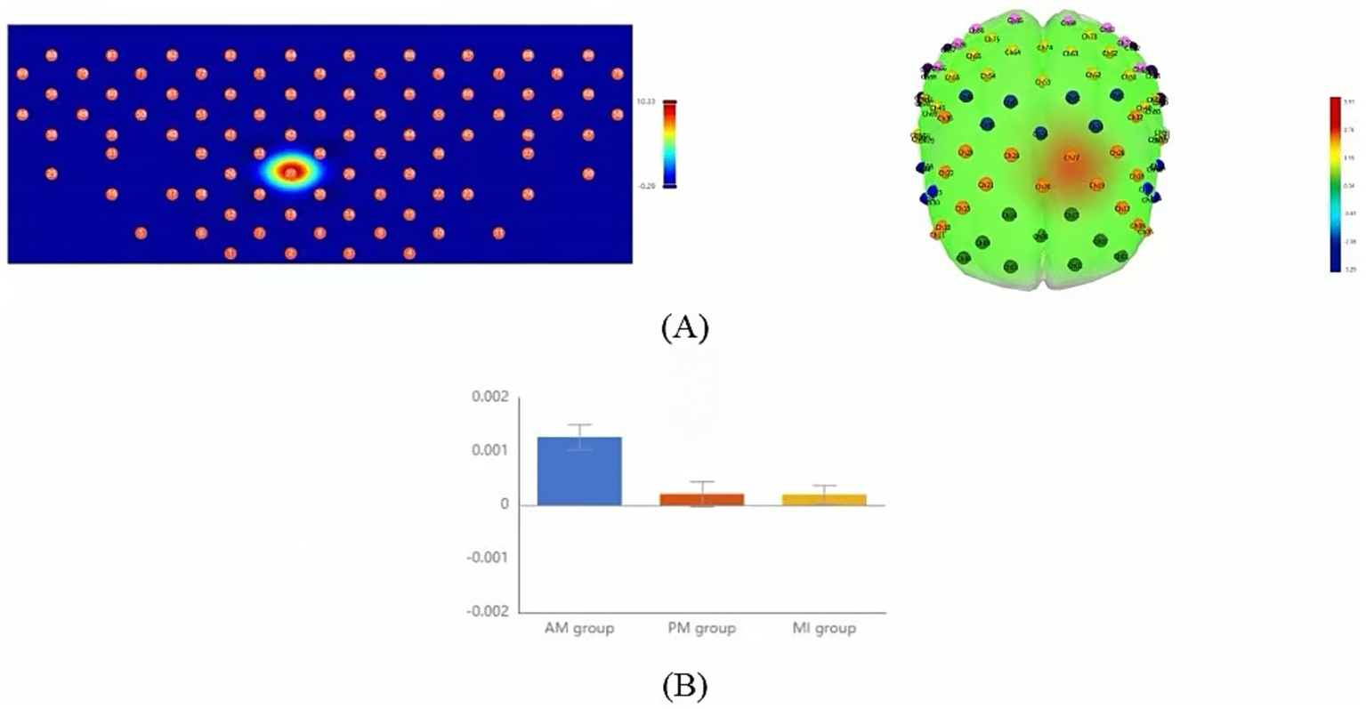 This spatial-intensity-temporal three-dimensional analytical framework systematically reveals the differential neural mechanisms underlying AM, PM, and MI. The statistical inference process for this framework is as follows. We employed multiple comparison correction strategies tailored to different analytical levels. In the spatial activation analysis, the p-values from the one-sample t-tests conducted on all channels were corrected using the false discovery rate (FDR) method. In the activation intensity and temporal dynamics analyses, the p-values for the main effects from the one-way repeated-measures ANOVAs performed at both the channel and ROI levels were also subjected to FDR correction. All post-hoc pairwise comparisons, conducted following a significant main effect in the ANOVA, were performed using paired t-tests with Bonferroni correction. Descriptive statistics were applied: continuous variables (e.g., age) underwent normality verification via Shapiro–Wilk tests, with normally distributed data presented as mean ± standard deviation; categorical variables (e.g., gender) were reported as frequencies (percentages).