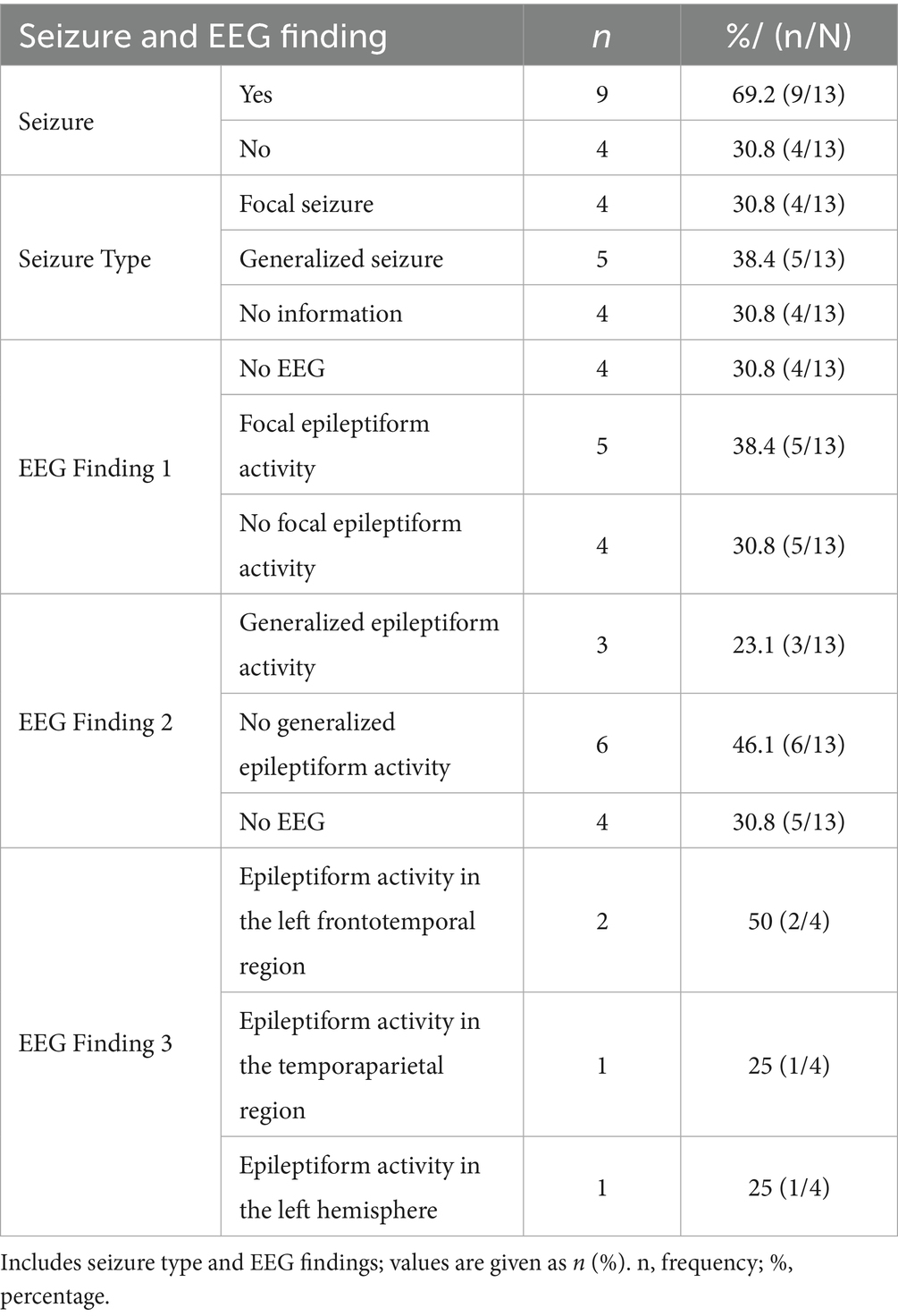 Seizures and EEG findings