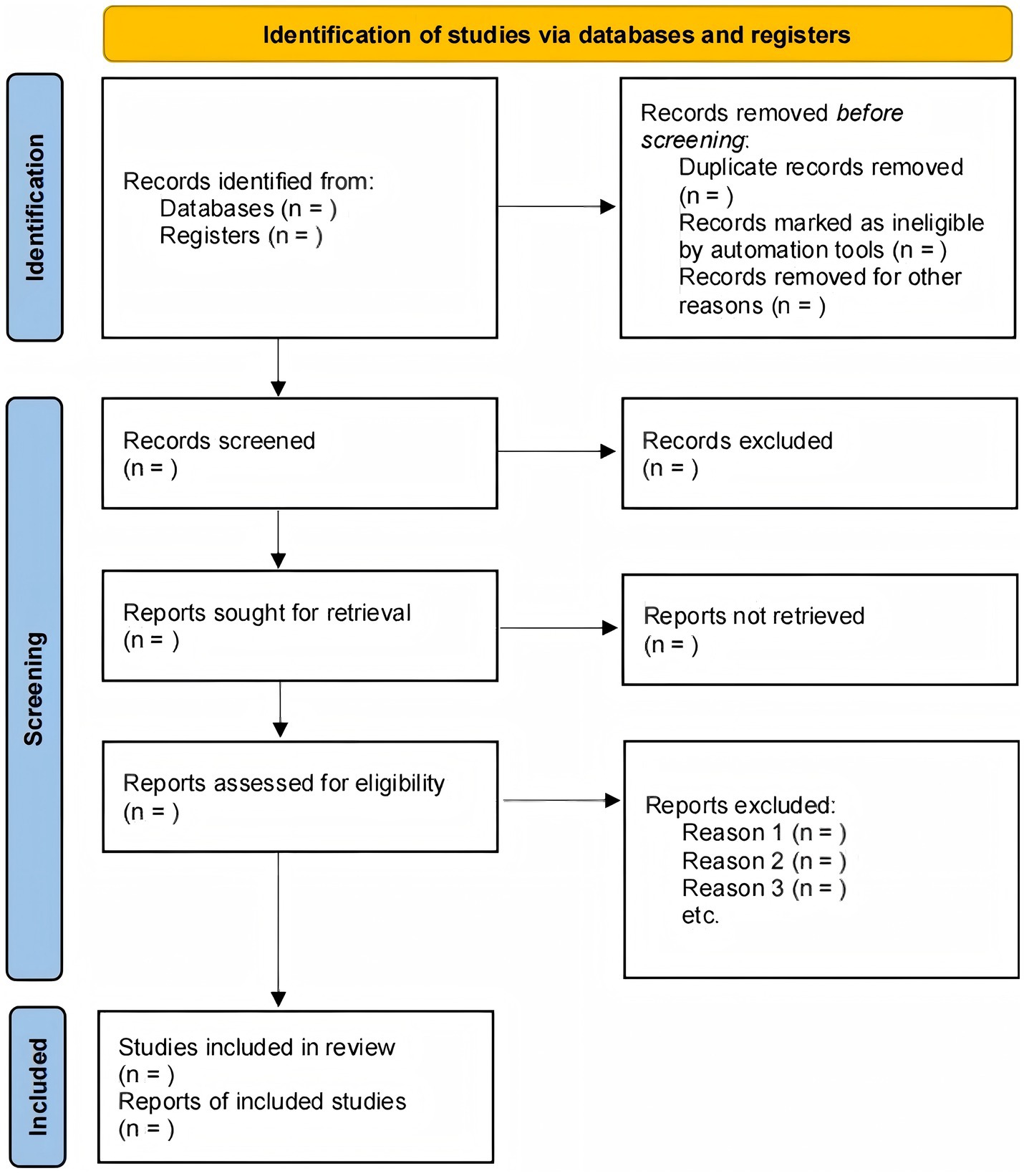 The study selection will be conducted and reported in accordance with the Preferred Reporting Items for Systematic Reviews and Meta-Analyses (PRISMA) statement. After search results are aggregated, duplicates will be removed using reference management software (e.g., EndNote), and the remaining records will be imported into a systematic review platform (e.g., Covidence) to manage the screening process (Figure 1).