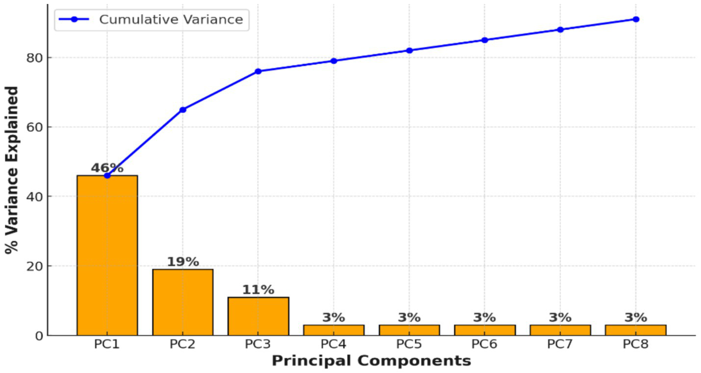 PCA preserved more than 95% of the variance, confirming stable dimensionality reduction.