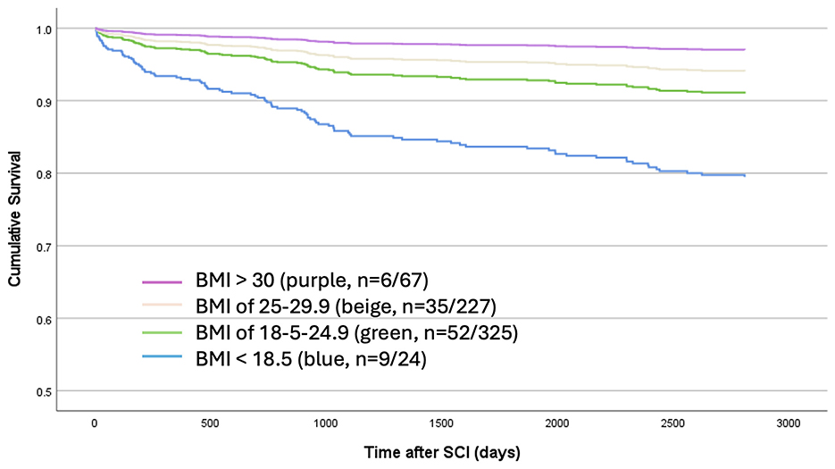 Keywords: acute spinal cord injury, body mass index, mortality risk, Charlson comorbidity index, injury severity score