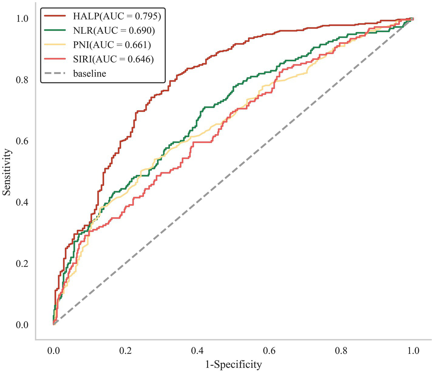 Chen X-L Xue L Wang W Chen H-N Zhang W-H Liu K et al . Prognostic significance of the combination of preoperative hemoglobin, albumin, lymphocyte and platelet in patients with gastric carcinoma: a retrospective cohort study. Oncotarget. (2015) 6:41370–82. doi: 10.18632/oncotarget.5629
