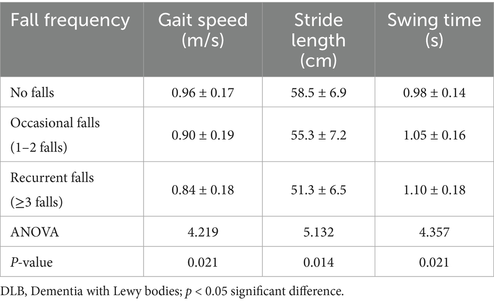 Citation: Su Z, Liu M, Kuai J, Yi T, Zheng Y, Wang C, Peng J and Tian X (2025) Gait characteristics and factors associated with fall risk in patients with dementia with Lewy bodies. Front. Neurol. 16:1670016. doi: 10.3389/fneur.2025.1670016