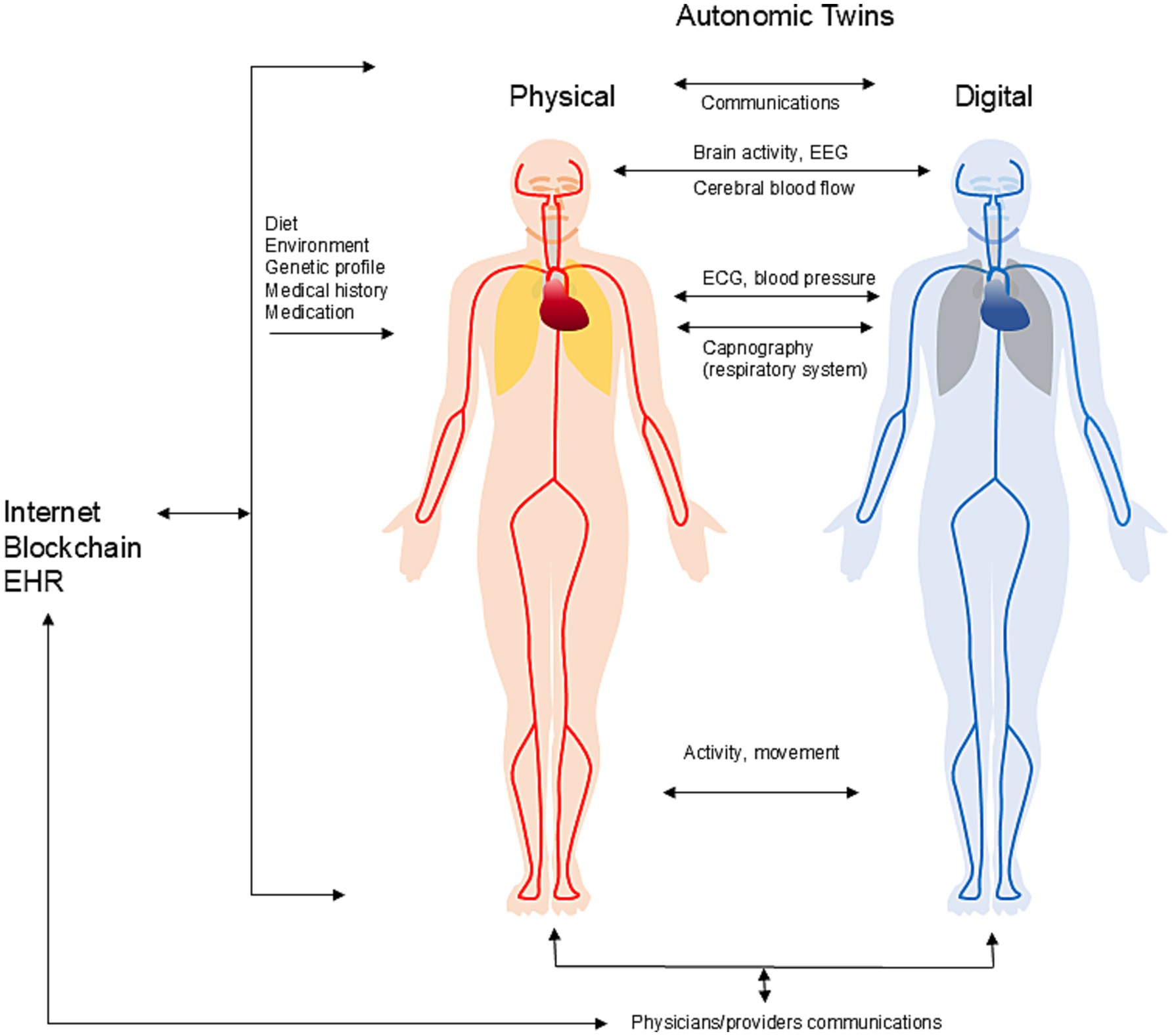 A significant challenge will be the need to process and store vast amount of data. While some data such as genetic footprint for an individual patient should be stored indefinitely, for real-time physiologic data some form of compression or filtering will be necessary. Decentralized blockchain technology (23) can be advantageously applied to digital twin health care data.