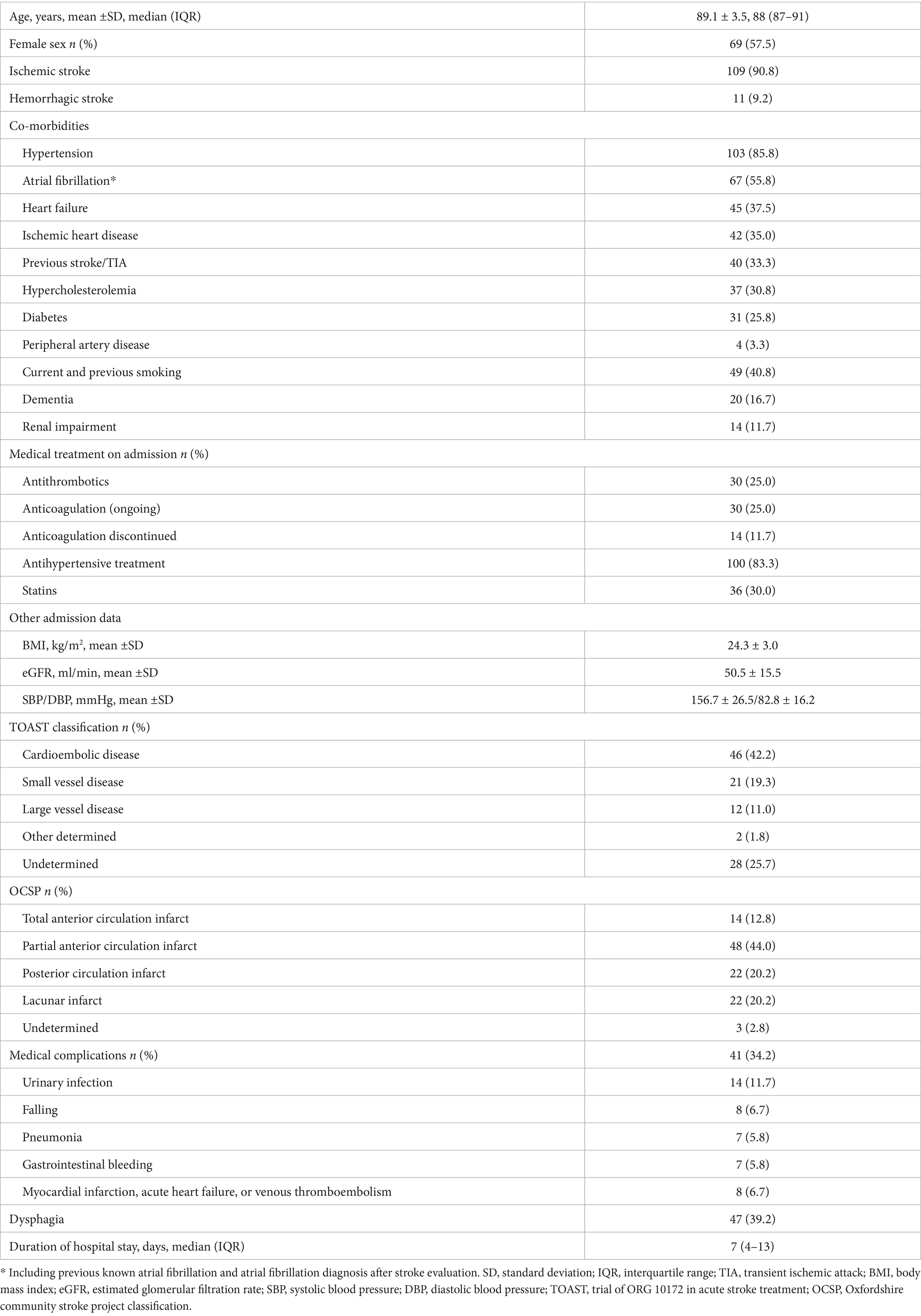 Table 1. Baseline characteristics of 120 persons with ischemic and hemorrhagic stroke aged ≥85 years.
