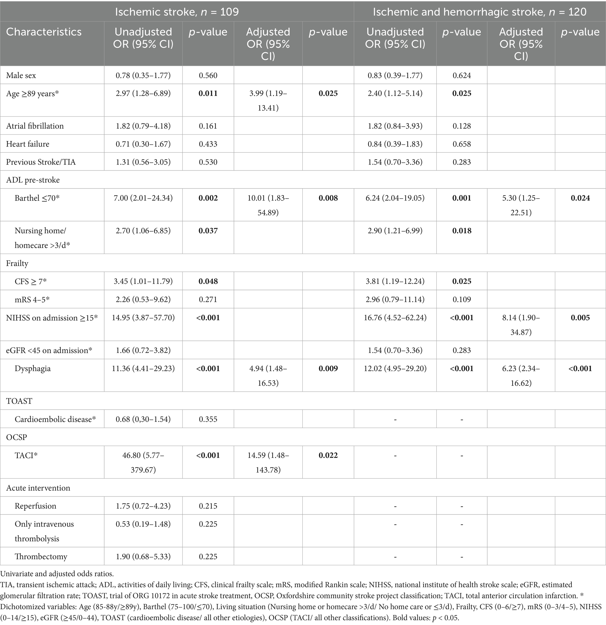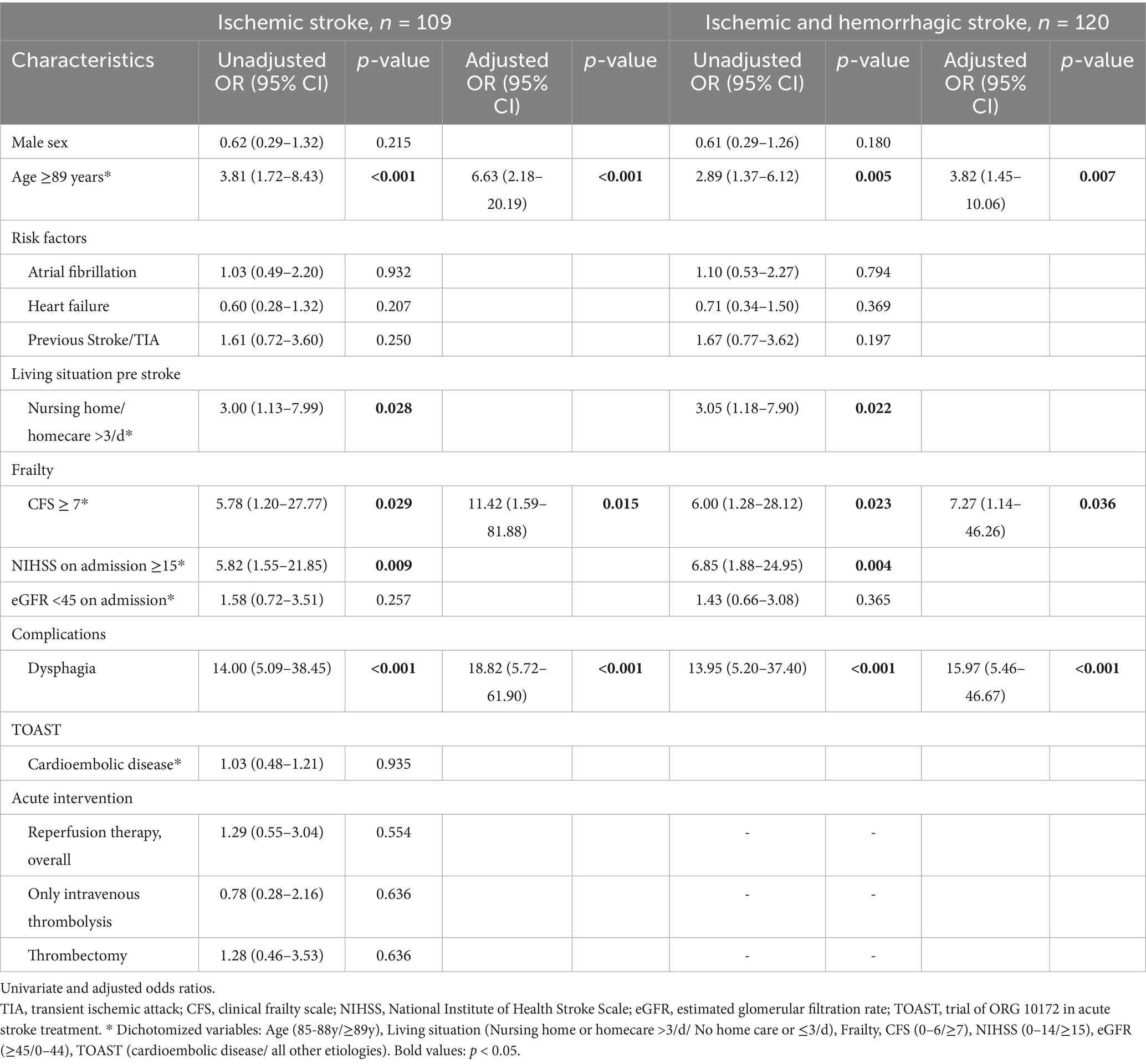 Table 4. Predictors of poor outcome, mRS ≥ 4 at 3 months among older persons, ≥85 years, with stroke.