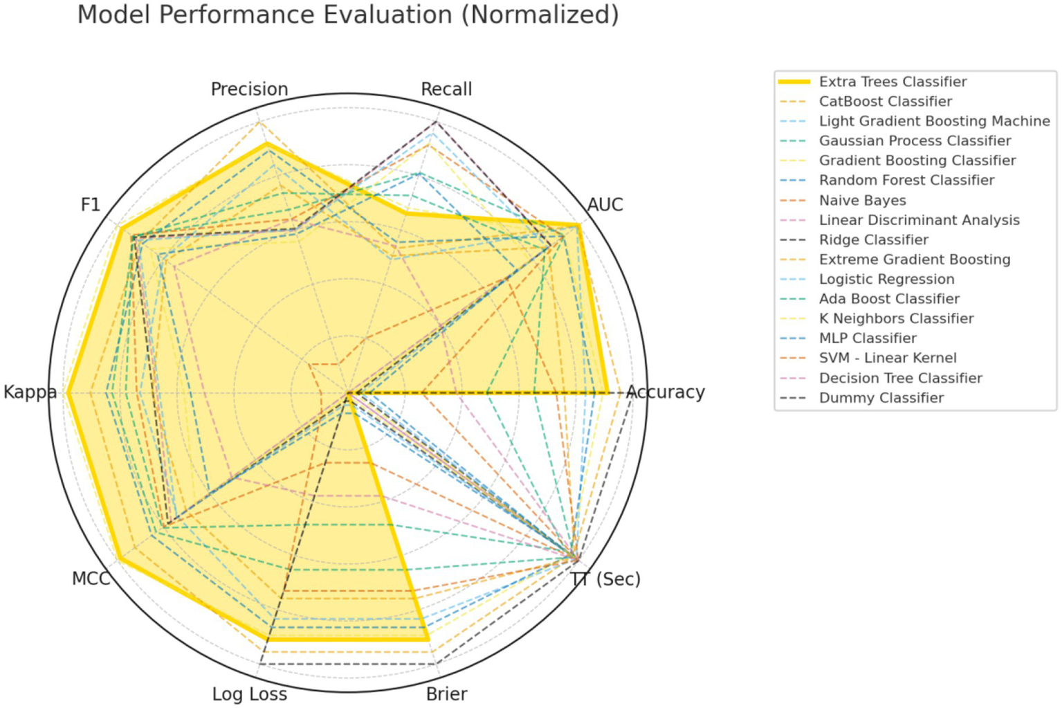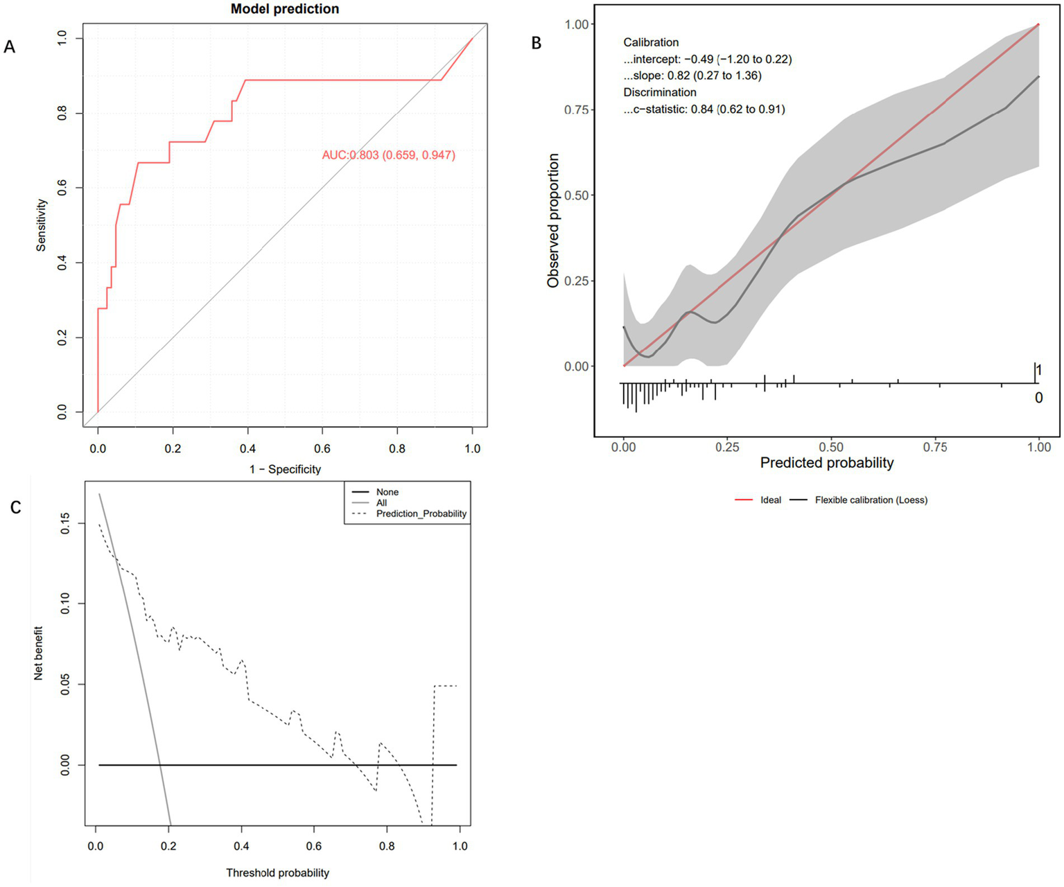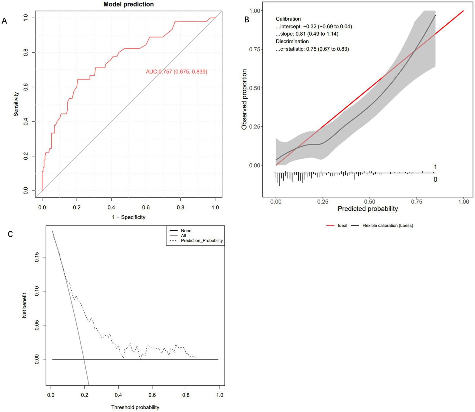 Categorical variables were analysed using the Chi-square test or Fisher’s exact test, with results presented as frequency (percentage). For continuous variables that follow a normal distribution, data were described as mean ± standard deviation, and intergroup comparisons were performed using the independent samples t-test (after confirming normality with the Shapiro–Wilk test and homogeneity of variance with Levene’s test). Non-normally distributed variables were described as median (interquartile range), with intergroup comparisons conducted using the Mann–Whitney U test. In the data preprocessing stage, categorical variables were transformed using one-hot encoding, and SMOTE-Tomek was employed to address the issue of category imbalance. The internal dataset is randomly stratified into training and validation sets in a 8:2 ratio, and feature selection is performed in the training set queue. During feature selection, the variables with zero variance and high correlation (correlation coefficient >0.8) were removed, and then the important features were initially screened by the Boruta algorithm. The significant predictors were selected based on the Information-Gain ranking of the important features. Based on significant predictive factors, a 5-fold cross-validation was used to benchmark 17 machine learning algorithms, including Extra Trees Classifier, Random Forest Classifier, Extreme Gradient Boosting, CatBoost Classifier, and MLP Classifier. The models were evaluated using various metrics, including Accuracy, Area Under the receiver operating characteristic (ROC) Curve (AUC), Recall, Precision (Prec.), F1-Score (F1), Cohen’s Kappa (Kappa), Matthews Correlation Coefficient (MCC), Logarithmic Loss (Log Loss), Brier Score (Brier), and Training Time (Seconds) [TT(Sec)]. Through these comprehensive indicators, the best model was determined. The performance of the final model was verified by ROC curve, calibration curve and clinical decision analysis on the internal test set and independent external validation set, respectively. SHapley Additive exPlanations (SHAP) dependence map and feature importance map were used to explain the feature contributions. All statistical analyses were performed with the use of R (version 4.4.1) and Python (version 3.13.3).