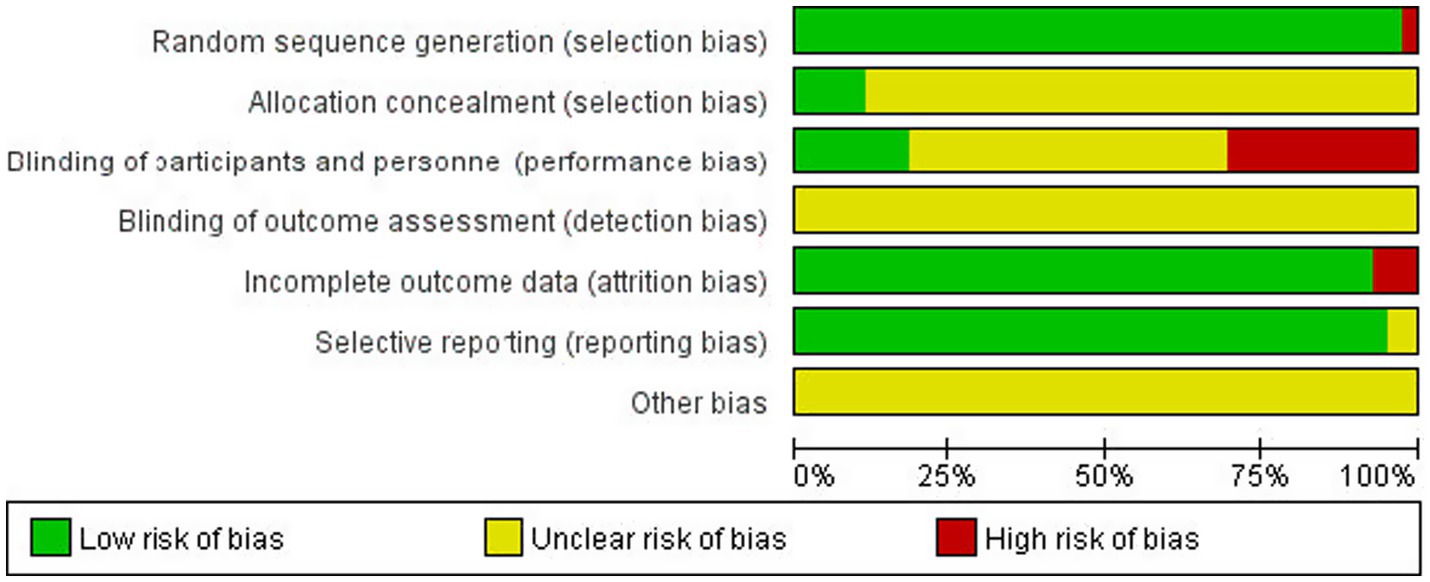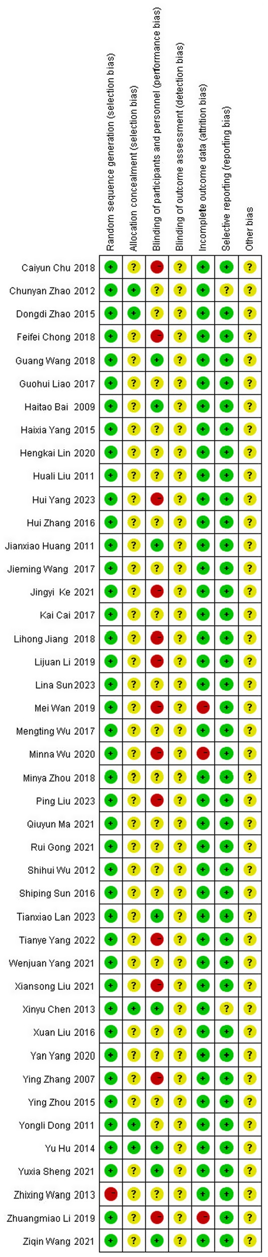 Literature risk of bias evaluation was performed according to the Cochrane Handbook for Systematic Evaluation 6.2, and the results are shown in Figures 2, 3.