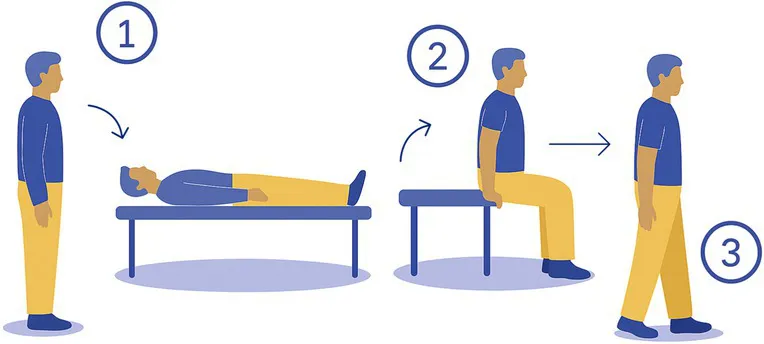 | 1-Bed | The participant lays flat on the bed; then sits up and finally stands up.![]() |