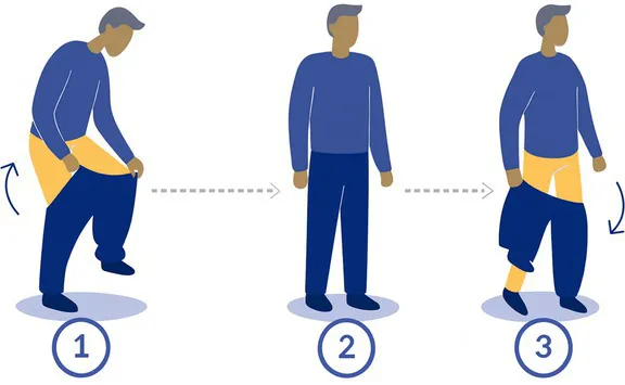| 2-Pants | Standing up and without external support, the participant puts a pair of loose pants one leg at a time and then takes it off.![]() |