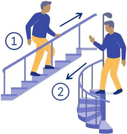 | 7-Stairs up | Down | The participant goes up 8 consecutive straight stairs and then down 6 consecutive spiral stairs without holding to the handrail (if possible).![]() |