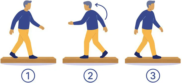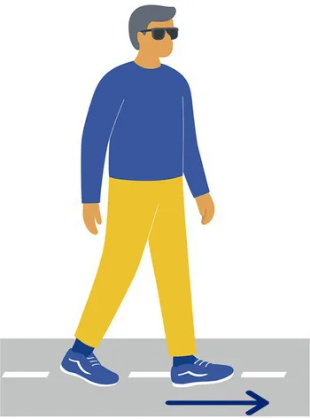 | 15-Walk in the dark | The participant walks on a straight 12 m line while wearing dark glasses.![]() |