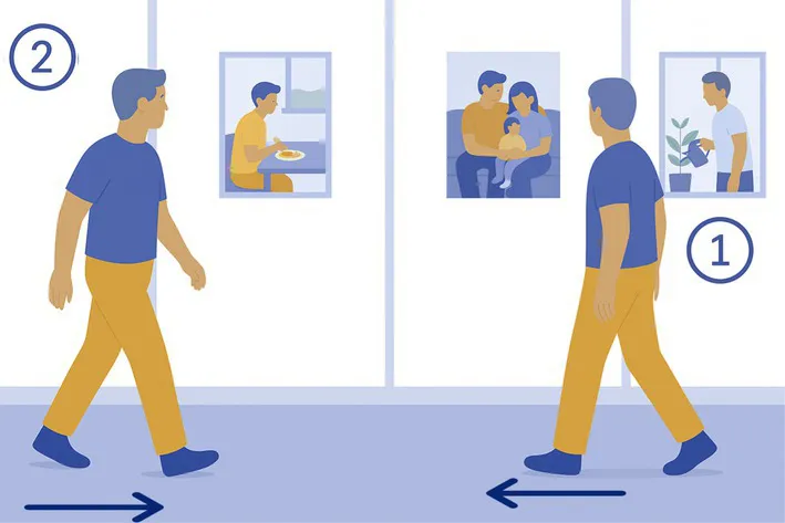 | 14-Picture recognition | Three photographs depicting everyday life scenes are mounted on the window surfaces of the experimental room (1 m separation between them). The participant is instructed to walk along a straight 10-meter pathway, turning at the end to return to the starting point (total distance per trial: 20 meters). While walking, the participant observes the displayed images. Upon completing the walking task, the participant is asked to verbally describe the pictures in as much detail as possible.![]() |