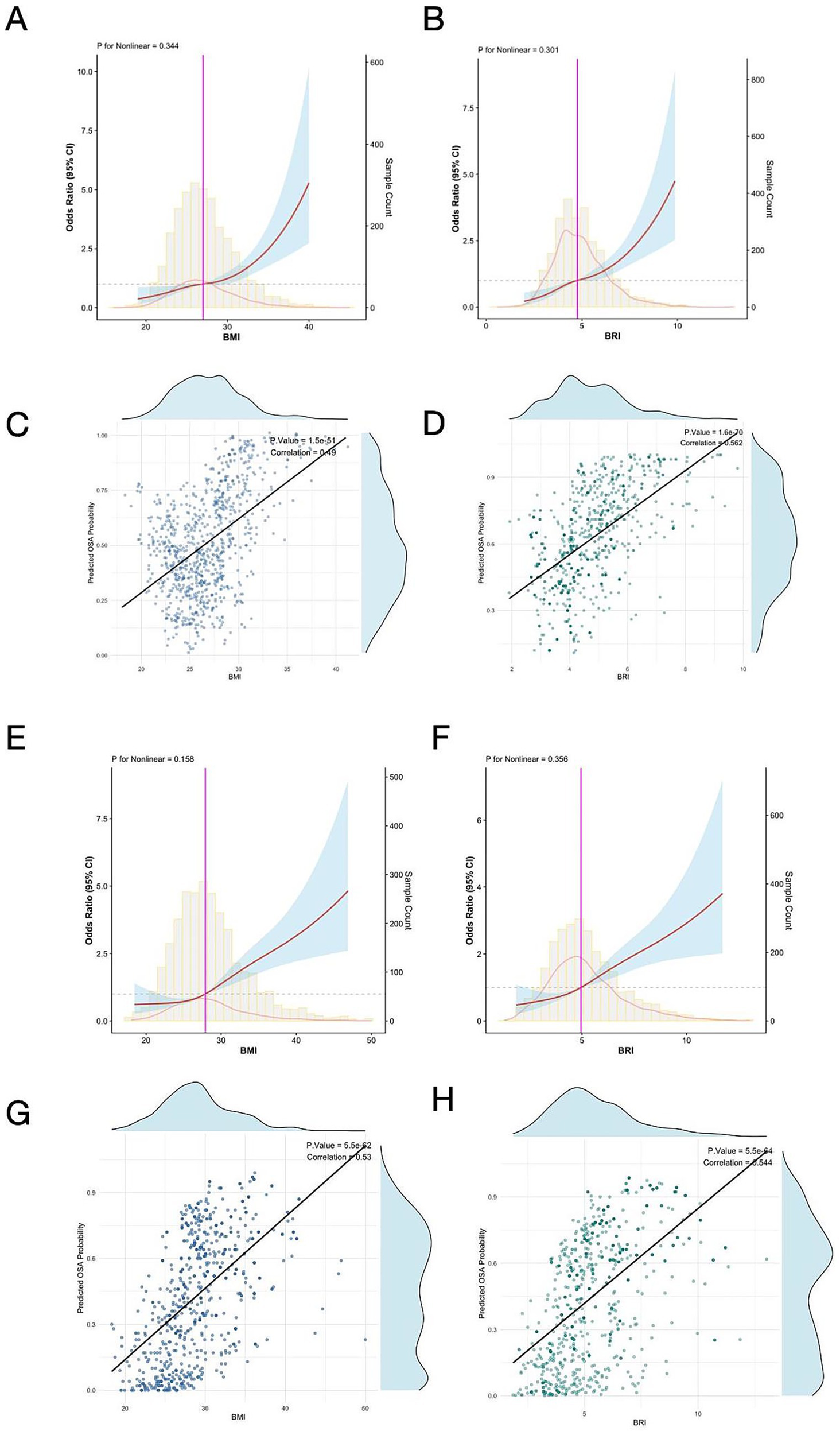 We analyzed data from two well-characterized cohorts: the Osteoporotic Fractures in Men Study (MrOS) and the Sleep Heart Health Study (SHHS). Statistical and machine learning approaches were used to assess associations between BRI, BMI, and OSA. Sex-stratified analyses and models evaluating of future OSA severity categories using baseline features were also performed.