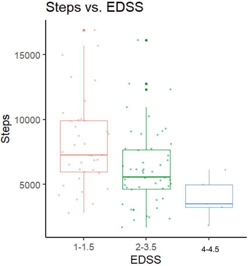 The association between EDSS and Daily Steps