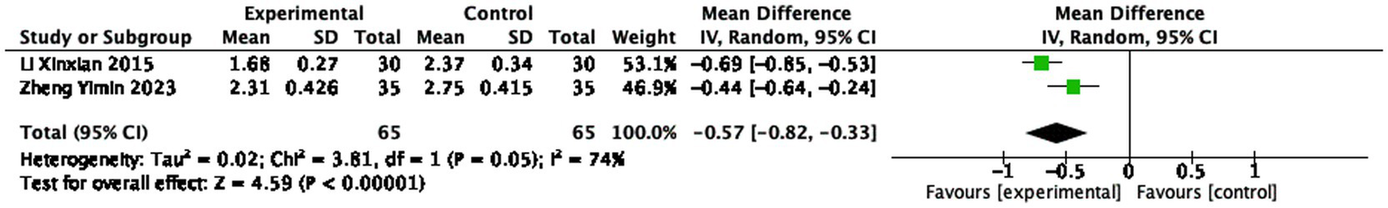 | Zeng Wenbi 2018 (43) | Fire needle | 23 | 23 | Western medicine+Fire needle | Western medicine | BL13, BL14, BL15, BL18, BL19, BL20, BL22, BL.23, BL25, BL28 | 5 min | 4 weeks | VAS | n.r. |