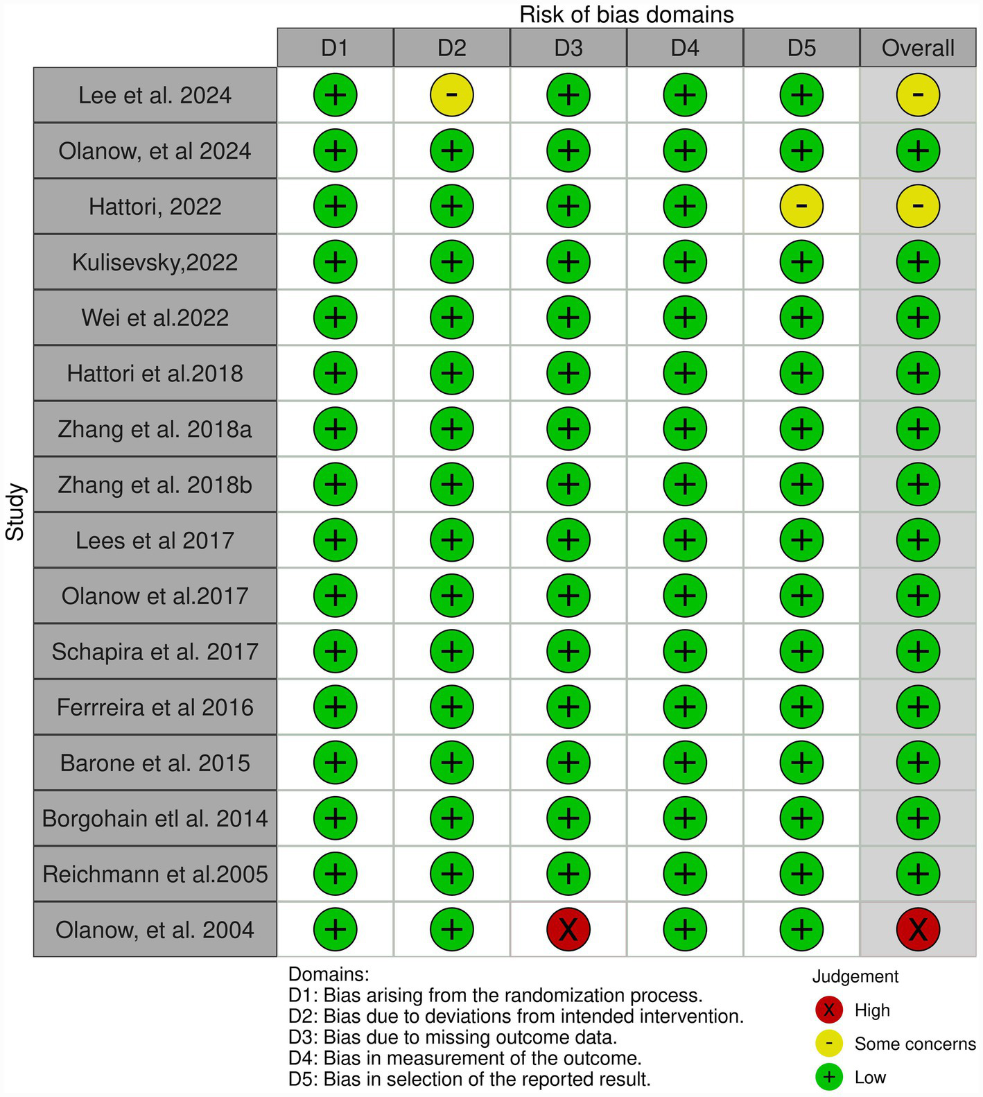 The risk of bias and methodological quality was evaluated using the Cochrane Collaboration Risk of Bias tool version 2 (RoB 2) (24). We assessed 5 parameters, including: (1) randomization process, (2) deviations from the intended interventions, (3) missing outcome data, (4) measurement of the outcomes, and (5) selection of the reported results. Each domain was rated as “low risk,” “some concerns,” or “high risk” according to the RoB 2 algorithm. Two reviewers independently assessed each study, and any discrepancies were resolved through discussion and consensus.