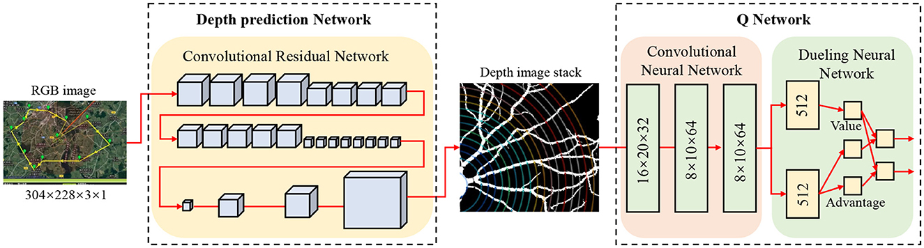 Against this background, intelligent obstacle avoidance technologies for robot groups have rapidly developed and become a hot research topic in the robotics field. Specifically, path planning technologies are responsible for identifying a feasible route from a starting point to a target point within a given map or environment, while obstacle avoidance technologies require robots to dynamically perceive and avoid both static and dynamic obstacles during movement, achieving local or global path adjustment and optimization (Almazrouei et al., 2023). Traditional methods mostly rely on a sequential “mapping-then-planning” framework, which, while effective in structured environments, often faces issues such as high computational complexity, delayed responses, and strong dependence on environmental stability when dealing with scenarios featuring randomly appearing obstacles or frequent environmental changes (Guo et al., 2022).