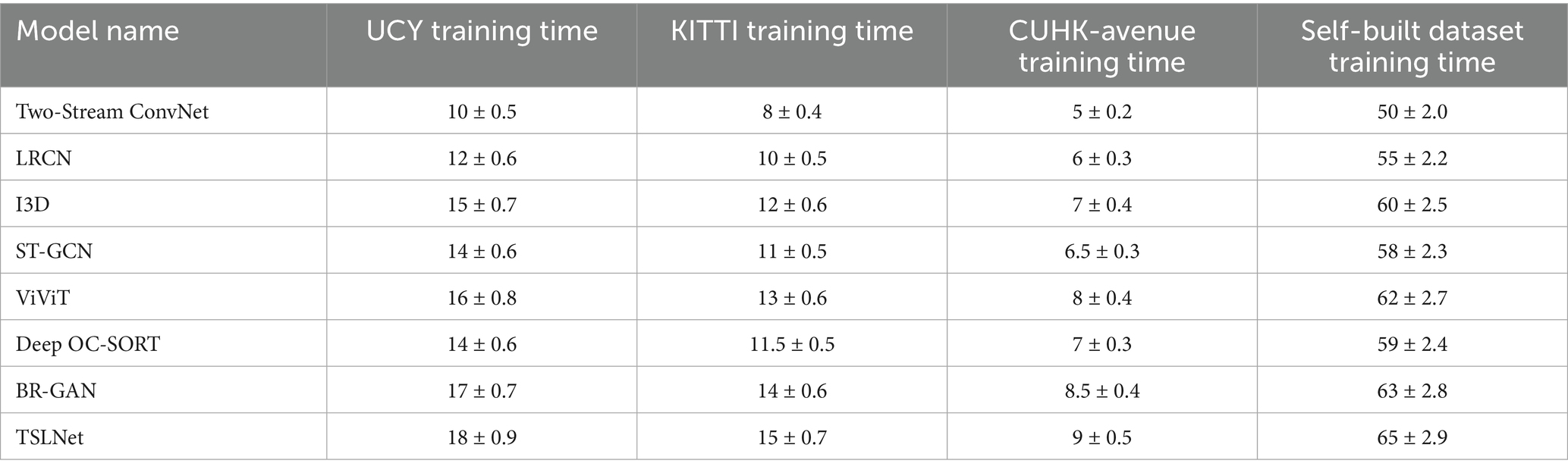 The results indicate that TSLNet incurs higher training time, slower inference speed, and greater resource consumption compared to mainstream baseline models. However, these extra computational costs lead to substantial improvements in recognition accuracy and enhanced robustness in complex scenarios. For tasks requiring high precision and sophisticated behavior modeling, TSLNet demonstrates clear advantages; whereas in scenarios with stricter real-time requirements, techniques such as model pruning, knowledge distillation, or hardware acceleration can be further employed to achieve a balance between performance and efficiency.