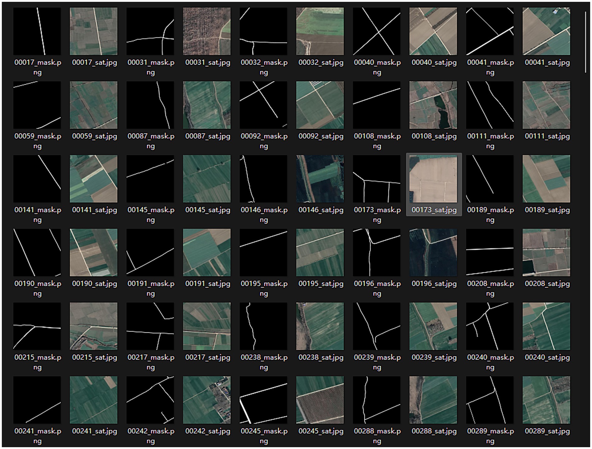 Due to the scarcity of rural roads in most current remote sensing datasets designed for cities, a specialized dataset, WHU RuR+ (Wang et al., 2025) is required for model training. WHU RuR + is a large-scale, high-resolution remote sensing dataset for rural road extraction. It contains 27,770 pairs of 1,024 × 1,024 satellite images with 0.3 m resolution and corresponding road annotations, covering 2620.71 km2 of rural areas in central China. A comprehensive analysis was conducted on the performance of state-of-the-art deep learning-based road extraction methods using the WHU RuR + dataset. Experimental results demonstrate that WHU RuR + presents significant challenges for large-scale rural road extraction. Furthermore, the dataset meets application requirements for rural road construction and exhibits substantial application potential. Sample data is shown in Figure 4.