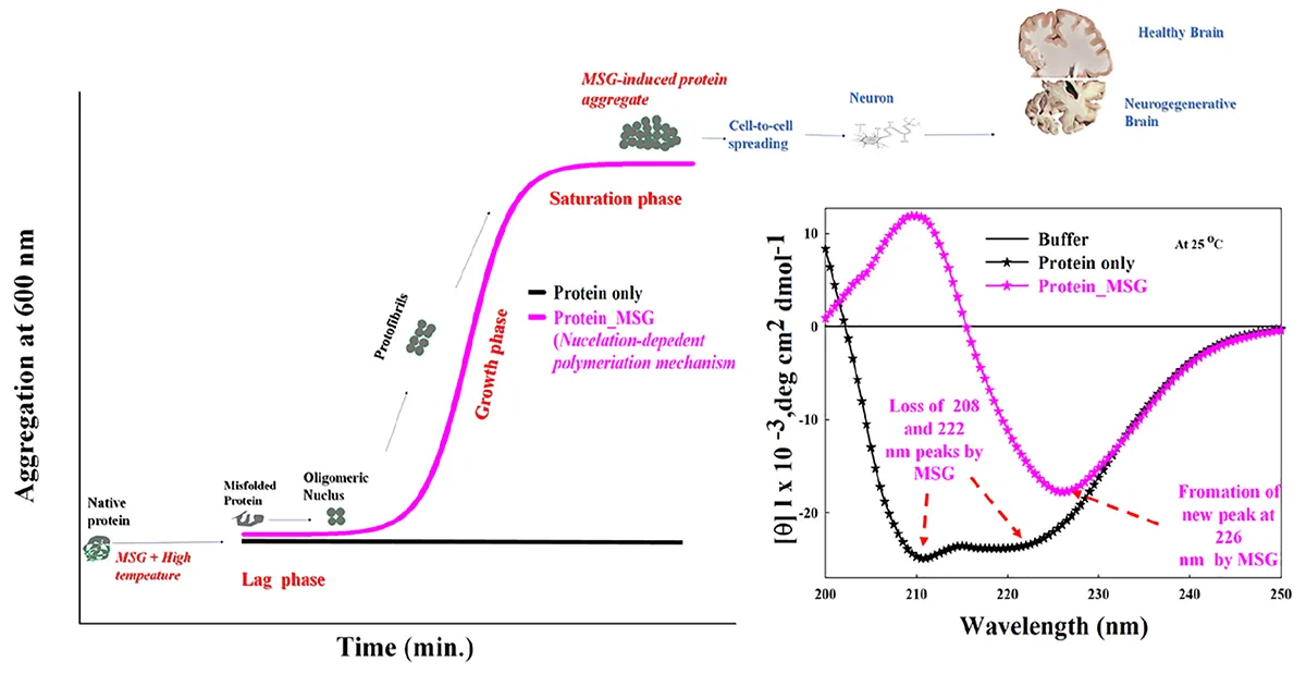 monosodium glutamate, protein aggregation, nucleation-dependent polymerization, isothermal titration calorimetry measurement, neurodegeneration
