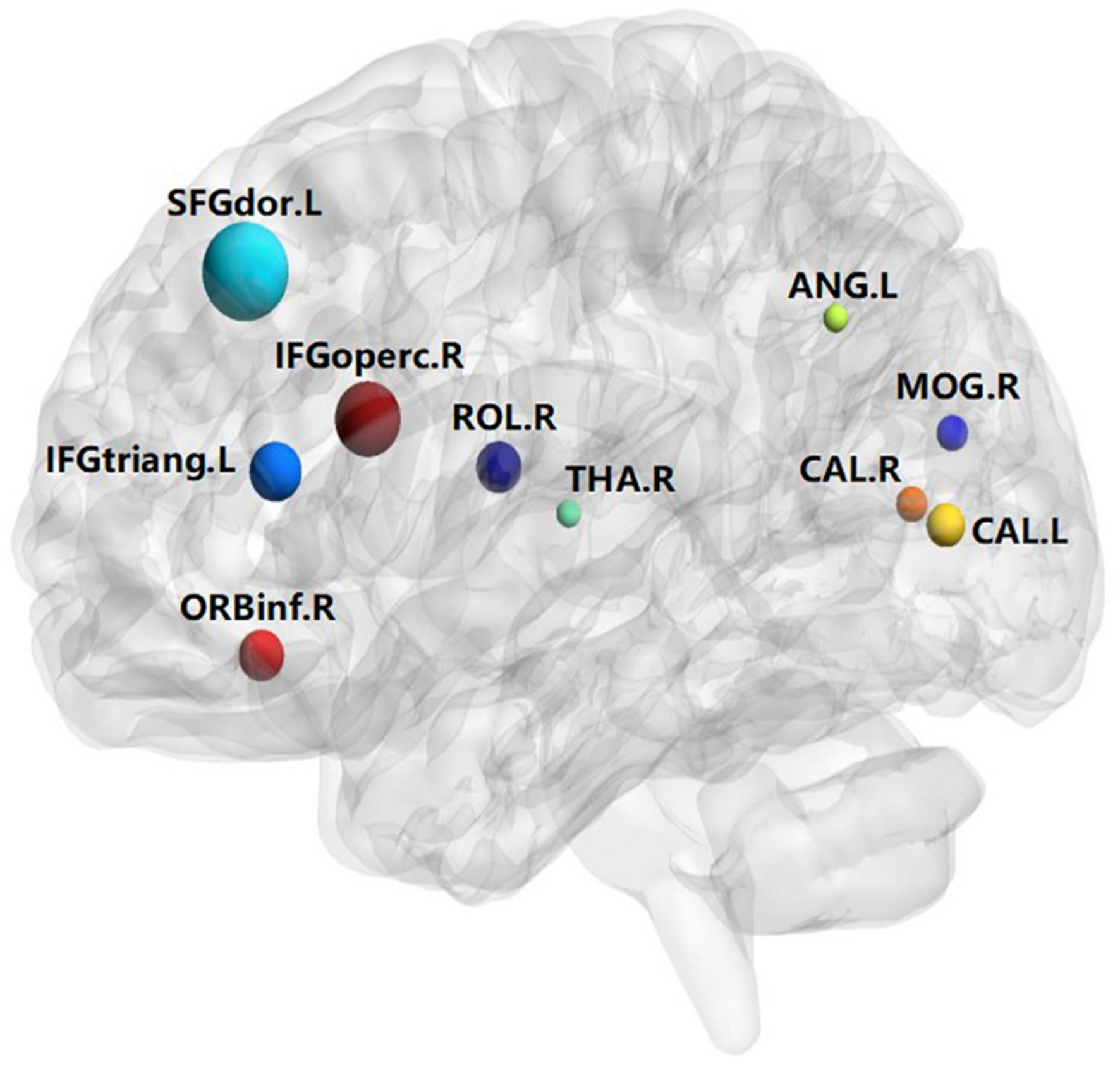 Visualized ROIs selected from high-order FC networks, the brighter the color is, the more important a cluster is.