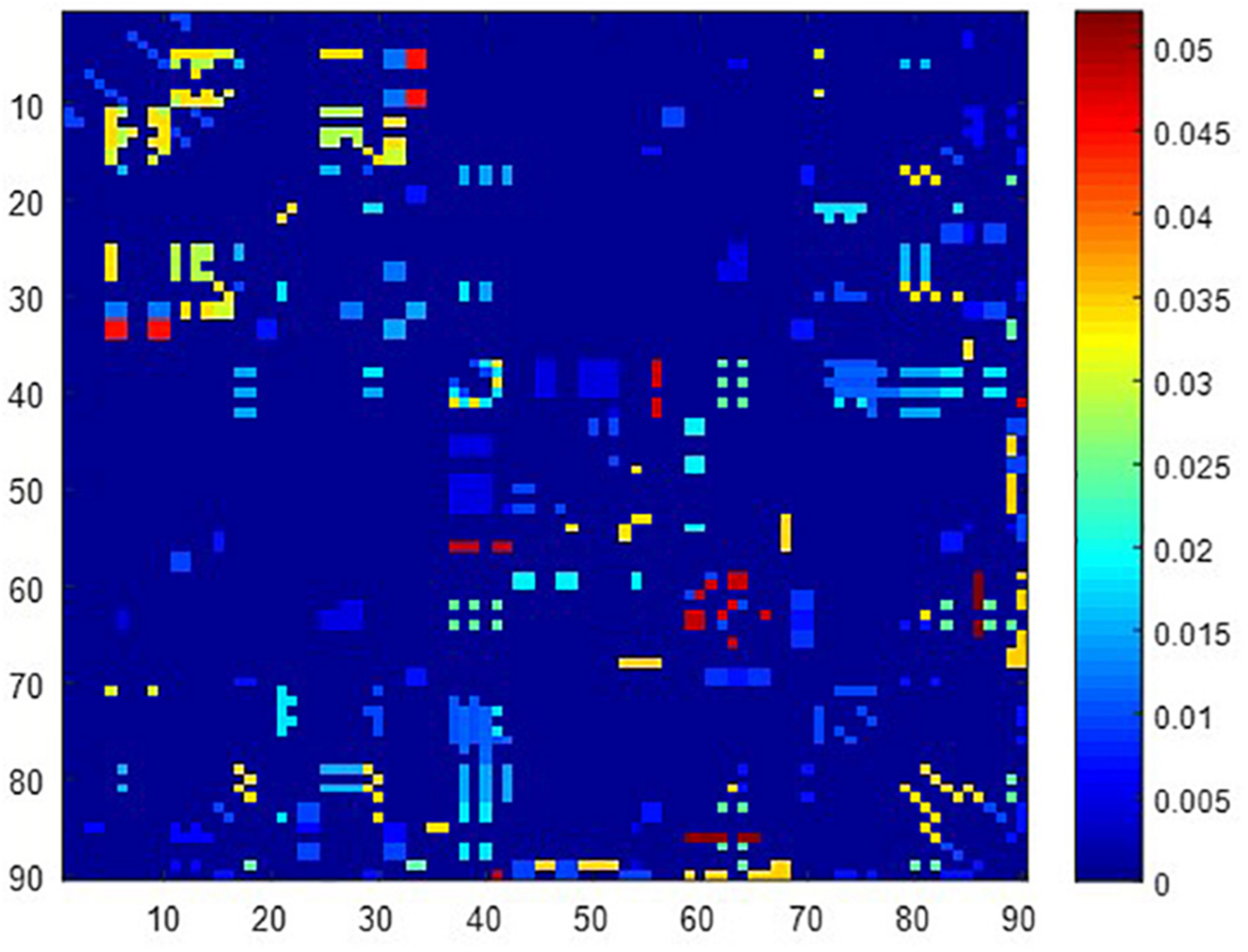 The constructed low-order FC networks. Each sub-figure corresponds to a different dynamic sliding window. Each element in the matrix is the correlation between two brain regions through the pairwise Pearson’s correlation analysis. Element with light color indicates positive correlation, while the dark color shows a competitive or anti-correlation relationship between regions.