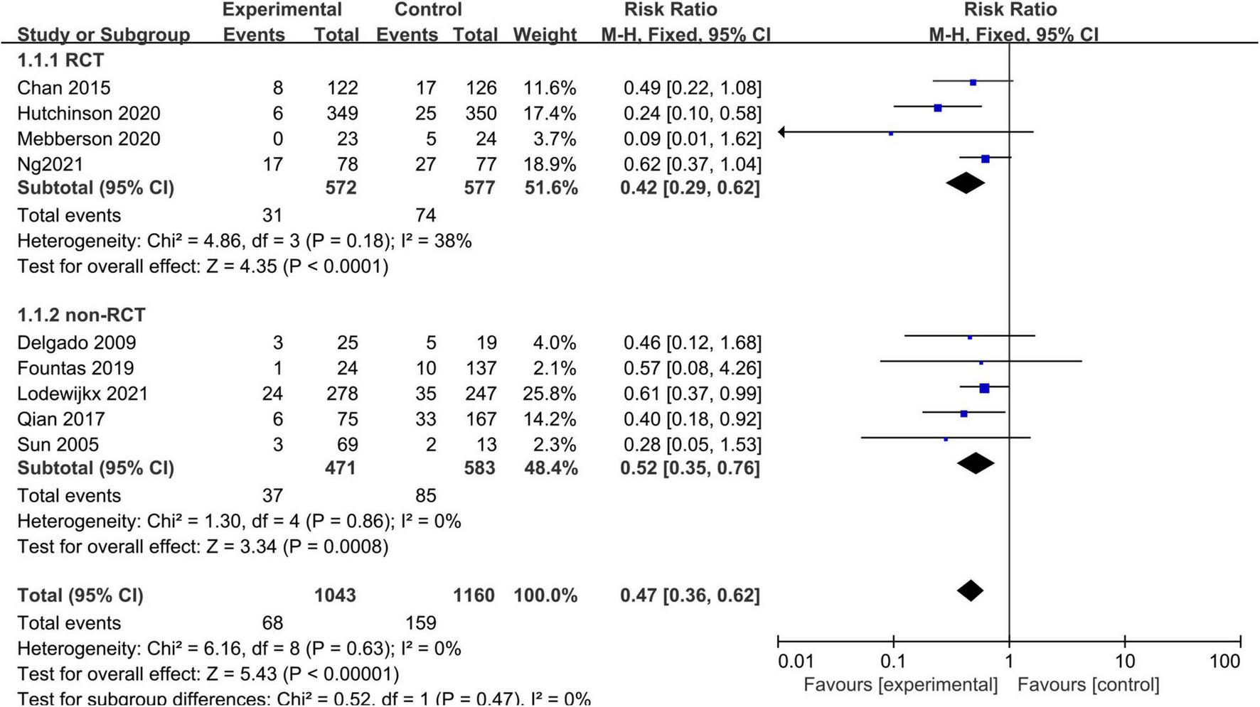 We performed the data synthesis and analysis using the Review Manager software (RevMan; The Nordic Cochrane Centre, Copenhagen, Denmark). We calculated the pooled risk ratios (RRs) and corresponding 95% confidence intervals (CIs), and displayed the results as forest plots. The RCTs and observational studies were analyzed together as well as separately. Heterogeneity among the studies was evaluated using the I2 statistic and Cochrane Q-statistic test. If I2 was > 50% or p was < 0.10 (i.e., there was significant heterogeneity), we used the random-effects model. Otherwise, we used the fixed-effects model. We performed subgroup and sensitivity analyses to identify and minimize heterogeneity. Publication bias of the primary outcome was evaluated using funnel plots.
