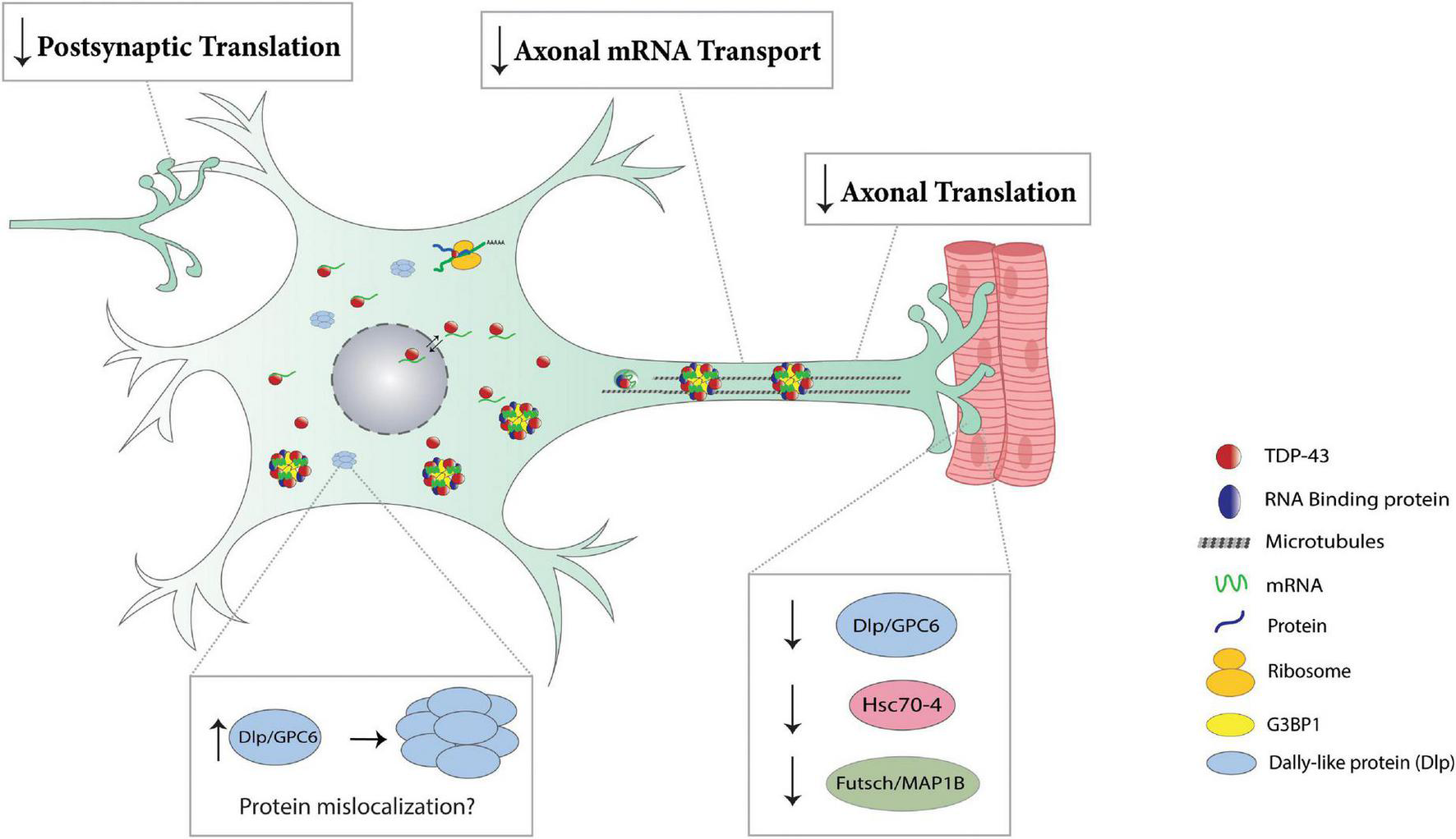TDP-43, ALS, FTD, translation, axon, dendrite, synapse, neurodegeneration
