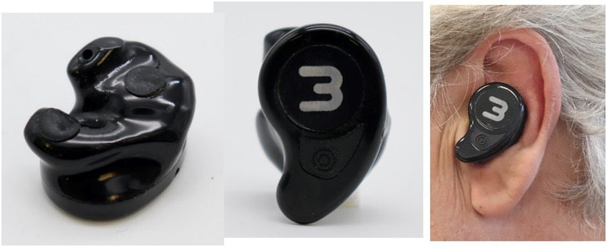 Our taVNS system consists of three parts. The auricular stimulation device was anatomically customized for each volunteer. An audiologist made a mold of the left auricle (outer ear) using Otoform®Ak kneadable impression material from Dreve Otoplastik Gmbh (Unna, Germany). After a 3D scan, a customized earbud was manufactured. The device had two integrated round squared 8 × 4 mm platinum electrodes with a surface area of 30 mm2, located in the cymba and cavum conchae, and was connected to an electrical stimulus generator via a standard cable. Figure 1, shows the position of the stimulation electrodes. The electrical stimulus generator was an external portable unit. For the present test, a train-pacing pattern with delayed biphasic pulses (DBP) was used. Figure 2 shows the main parameters and a schematic view of DBP-type burst. This pattern is equivalent to pacing at a frequency of 20 Hz and a pulse width of 300 μs. The electrical generator was connected by Bluetooth to a smart phone app. That worked as a stimulation control module.