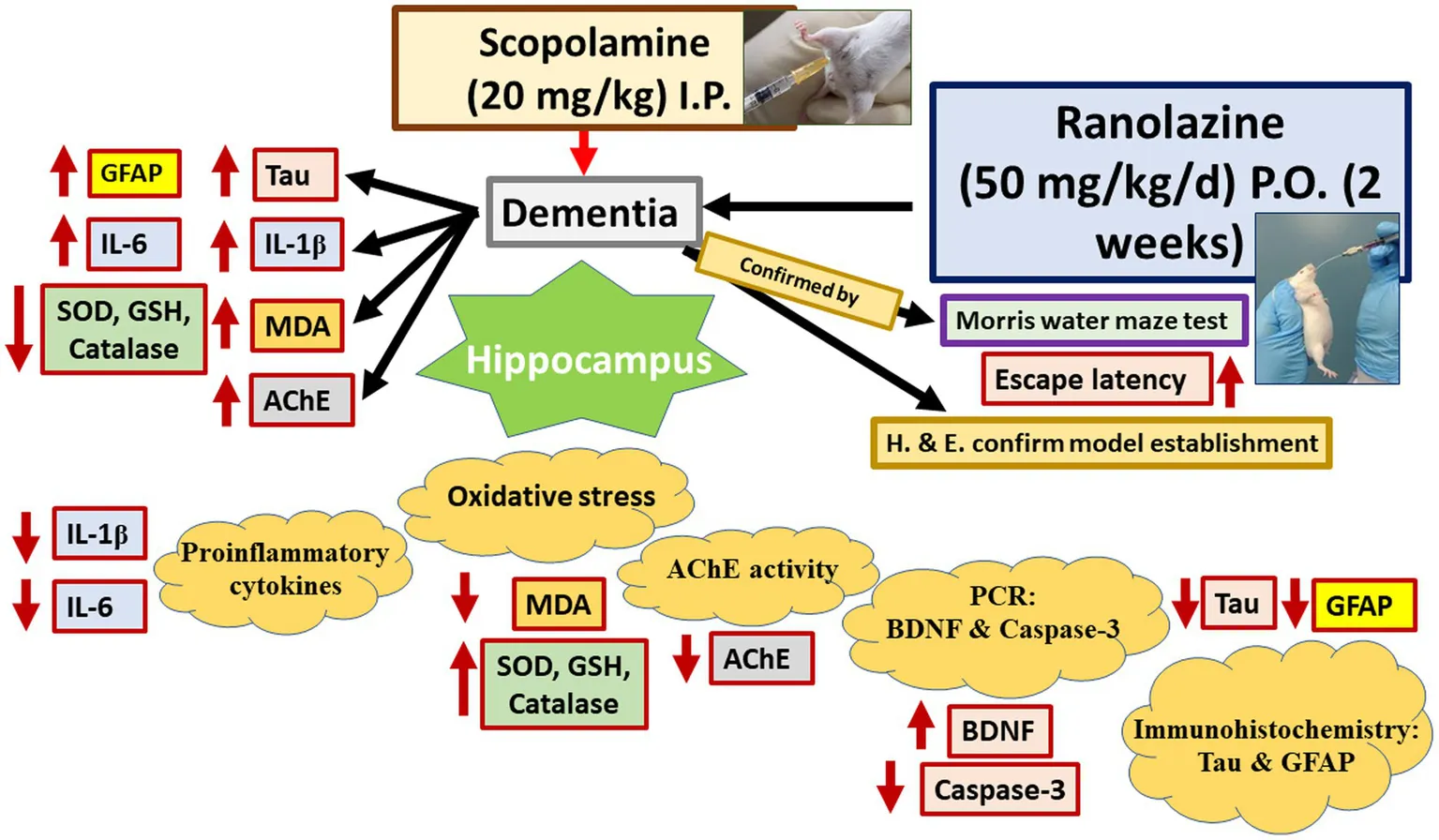 Samir SM, Hassan HM, Elmowafy R, ElNashar EM, Alghamdi MA, AlSheikh MH, Al-Zahrani NS, Alasiri FM and Elhadidy MG (2024) Neuroprotective effect of ranolazine improves behavioral discrepancies in a rat model of scopolamine-induced dementia. Front. Neurosci. 17:1267675. doi: 10.3389/fnins.2023.1267675