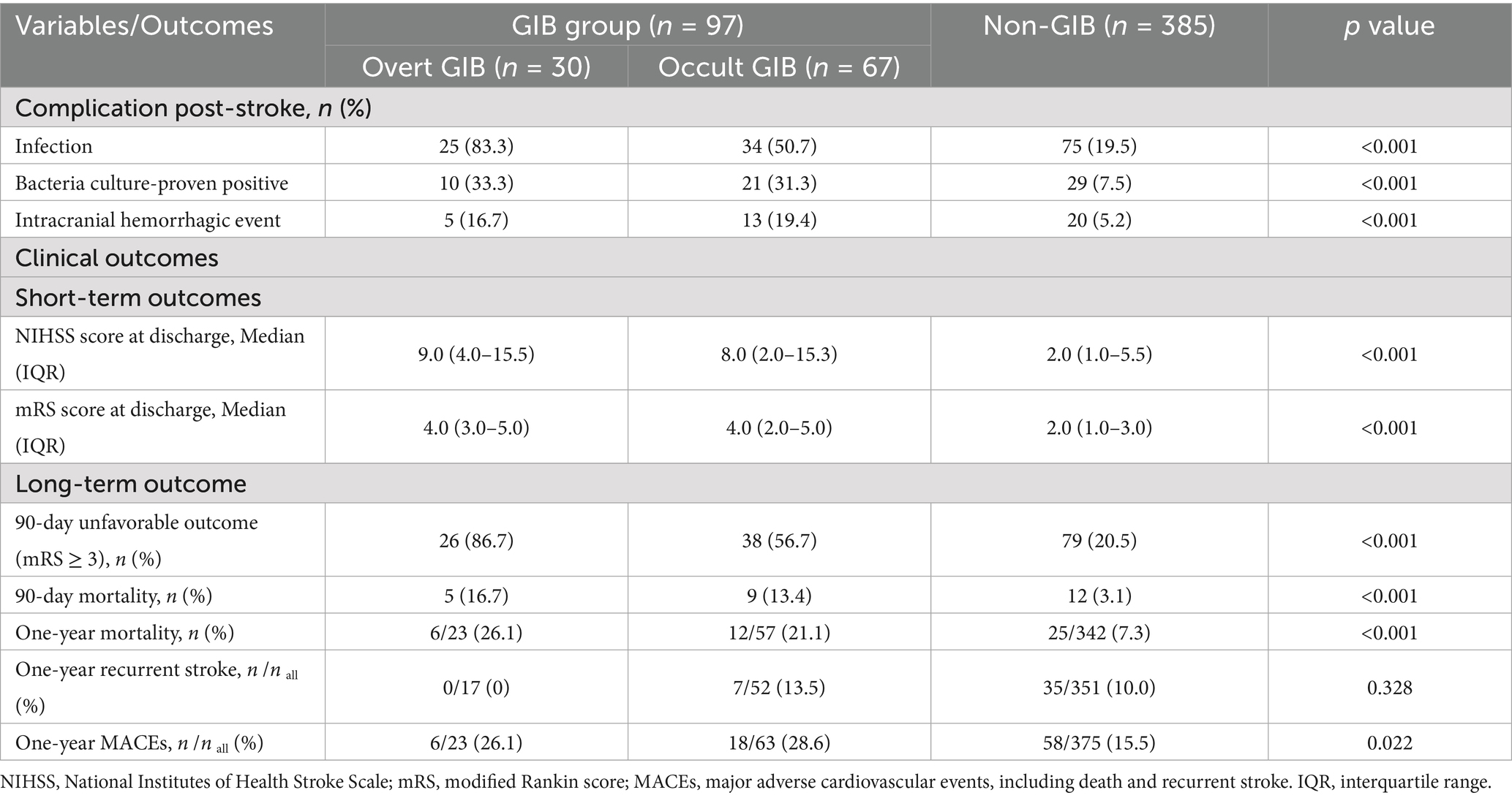 3.2 Poor short-term and long-term clinical outcomes in AIS patients with occult GIB