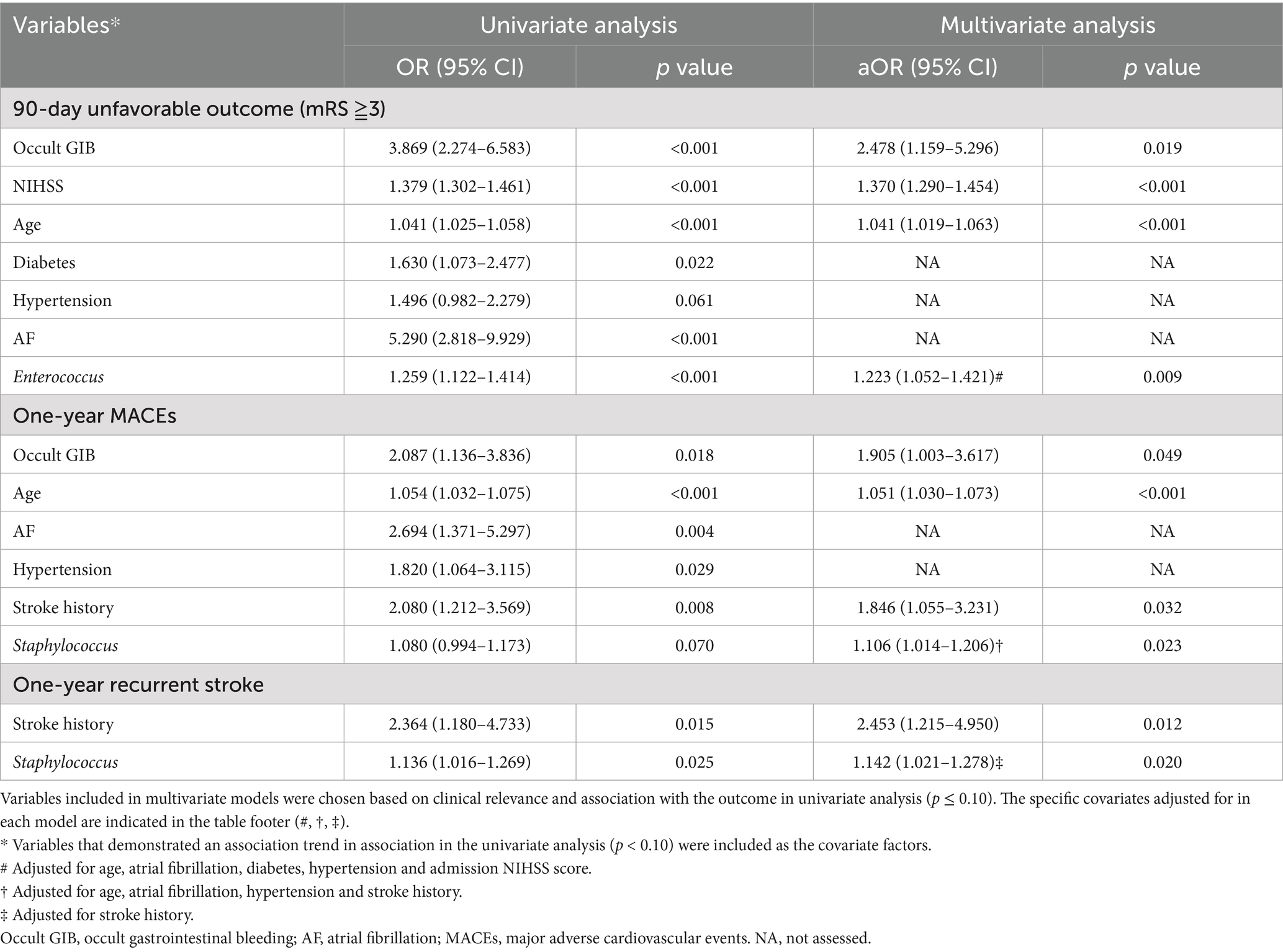 Table 4. Univariate and multivariate logistic regression analysis of potential risks for long-term outcomes in AIS patients.