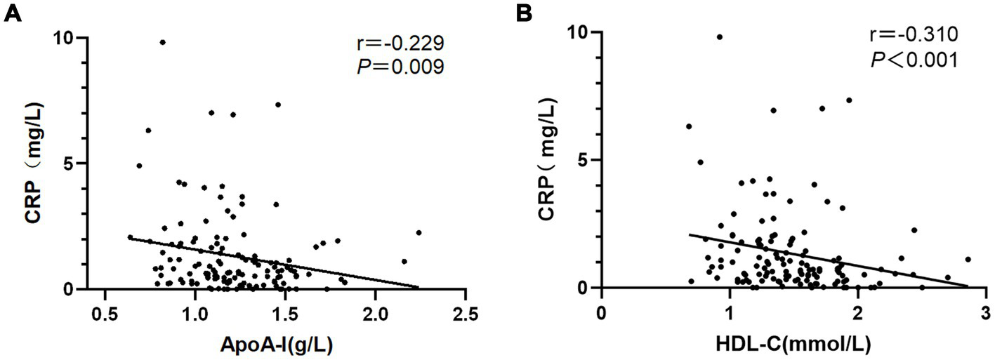Statistical analyses were conducted using IBM SPSS Statistics version 27. Continuous variables with a normal distribution were compared using the independent samples t-test, while those not normally distributed were analyzed using the Mann–Whitney U test. Categorical variables were assessed using the chi-square test. Binary logistic regression analysis was performed to identify independent risk factors associated with the severity of neurological impairment and relapse. Receiver operating characteristic (ROC) curve analysis was employed to evaluate the predictive value of ApoA-I for severe neurological impairment. Spearman correlation analysis was used to explore the associations between ApoA-I, HDL-C, and CRP levels.