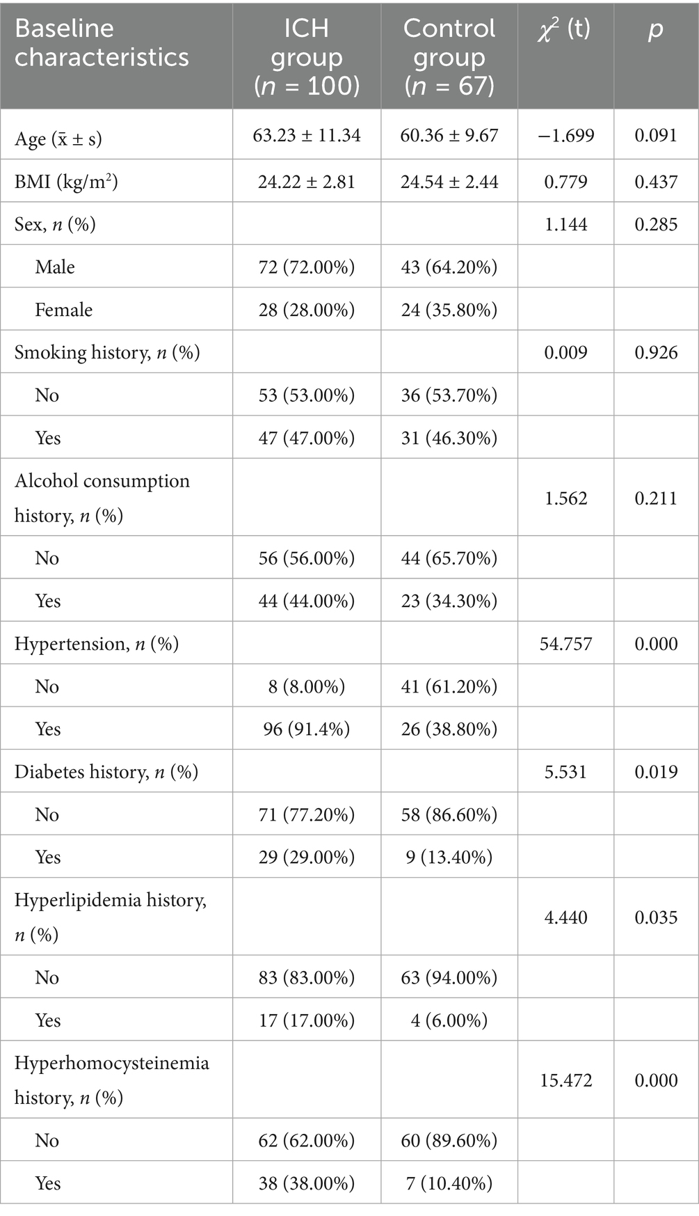 Table 1. Comparison of baseline characteristics between the hemorrhagic stroke group and the control group.