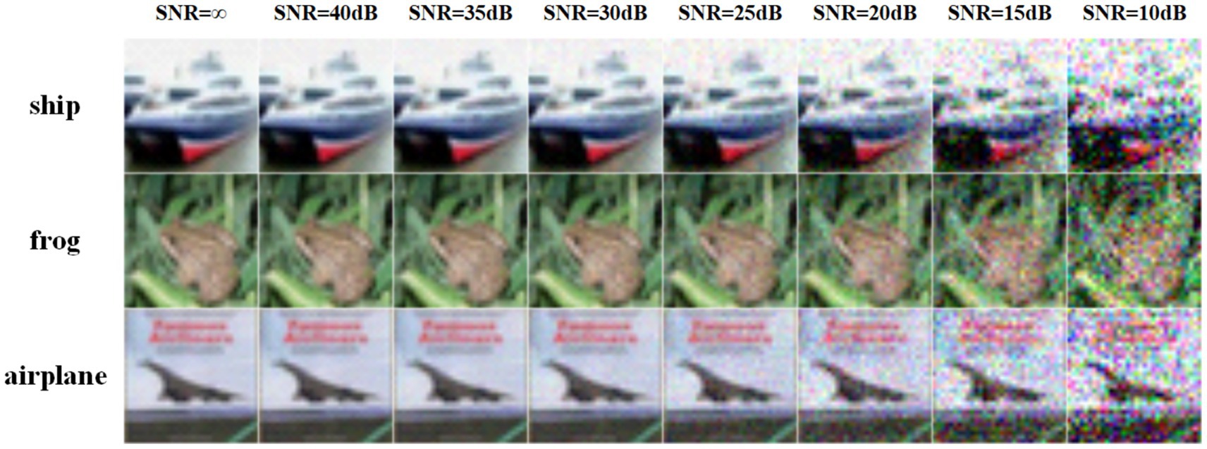 To illustrate the effects of network architecture and quantization on accuracy under different SNR levels (as outlined in Figure 7), the corresponding results are presented in Figure 8. Specifically, at high SNR levels, the accuracy of the w2w8 model closely approaches that of the full-precision model. However, as the SNR decreases, the accuracy of the full-precision model shows a downward trend. For example, at an SNR of 15, the ResNet19 full-precision model achieves approximately 70% accuracy, whereas the w2w8 quantized model maintains a higher accuracy of about 74%. Similarly, for the VGG16 network at the same SNR, the full-precision model’s accuracy drops to around 55%, while the w2w8 model retains approximately 62%. These results show that, as the SNR diminishes, the proposed quantization method not only preserves the robustness of the model but exceeds that of the full-precision counterpart, showcasing improved robustness under noisy conditions.