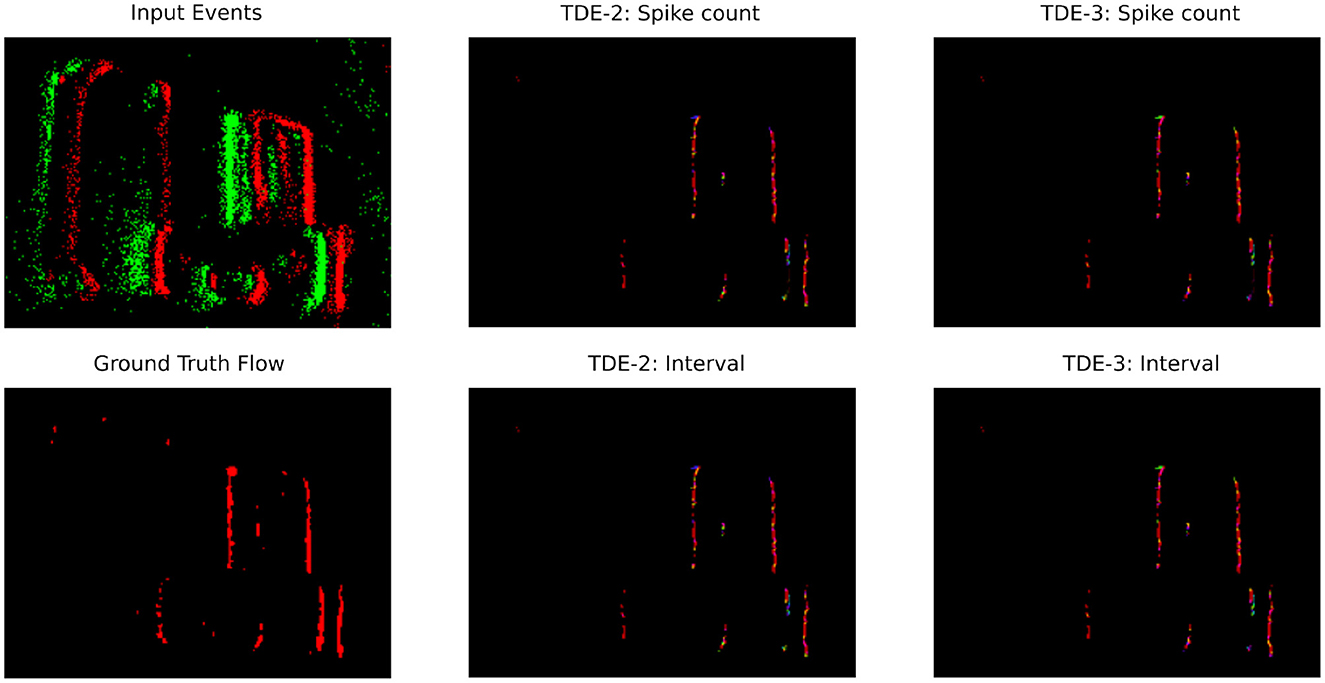 To summarize, both TDE-2 and TDE-3 can extract a wide dynamic range of velocity direction in magnitude from real-world event-based data with both spike count and ISI-based velocity inference.