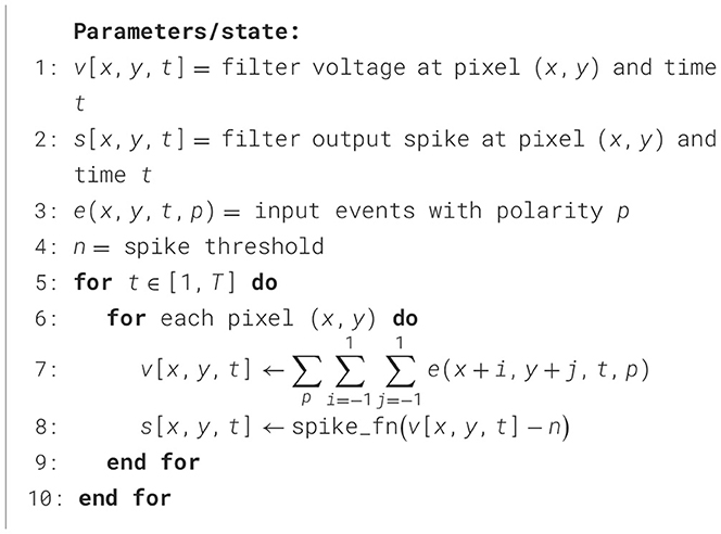 Guo, S., and Delbruck, T. (2023). Low cost and latency event camera background activity denoising. IEEE Trans. Pattern Anal. Mach. Intell. 45, 785–795. doi: 10.1109/TPAMI.2022.3152999