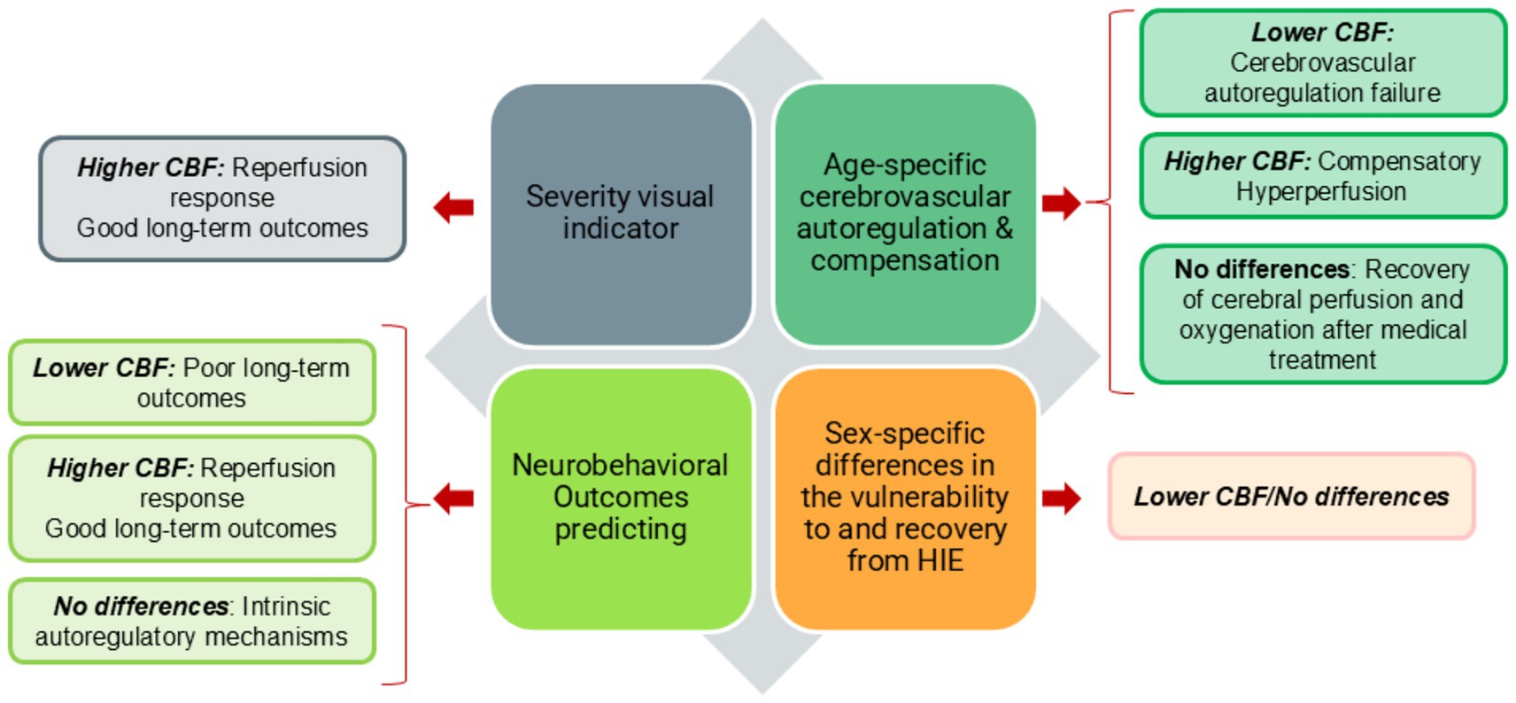 ASL provides a dynamic and sensitive biomarker of evolving brain perfusion in neonatal HIE. By characterizing the spatiotemporal trajectory of CBF, ASL helps distinguish between reversible versus progressive injury and predicts neurodevelopmental outcomes with high reliability (Figure 4).