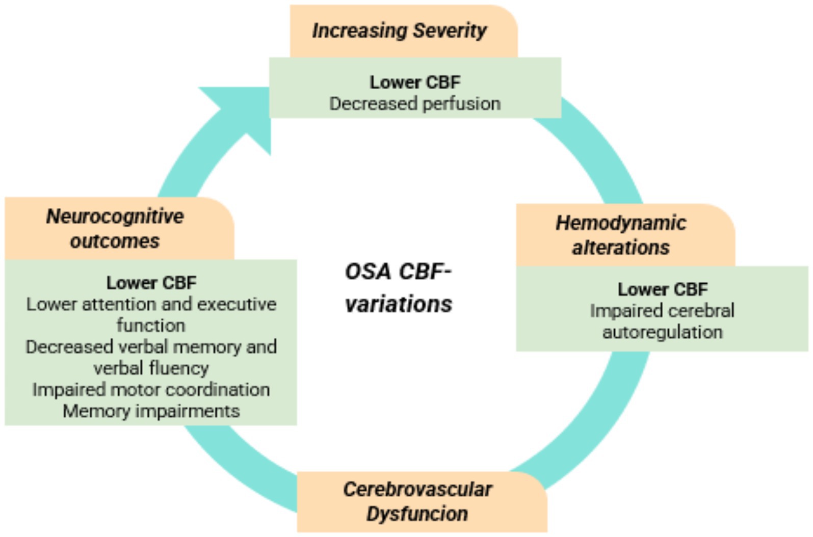 OSA is characterized by recurrent upper airway obstruction during sleep, resulting in cycles of hypoxia and reoxygenation. These cycles can induce vascular oxidative stress, endothelial dysfunction, and impaired cerebral autoregulation (Claassen et al., 2021).