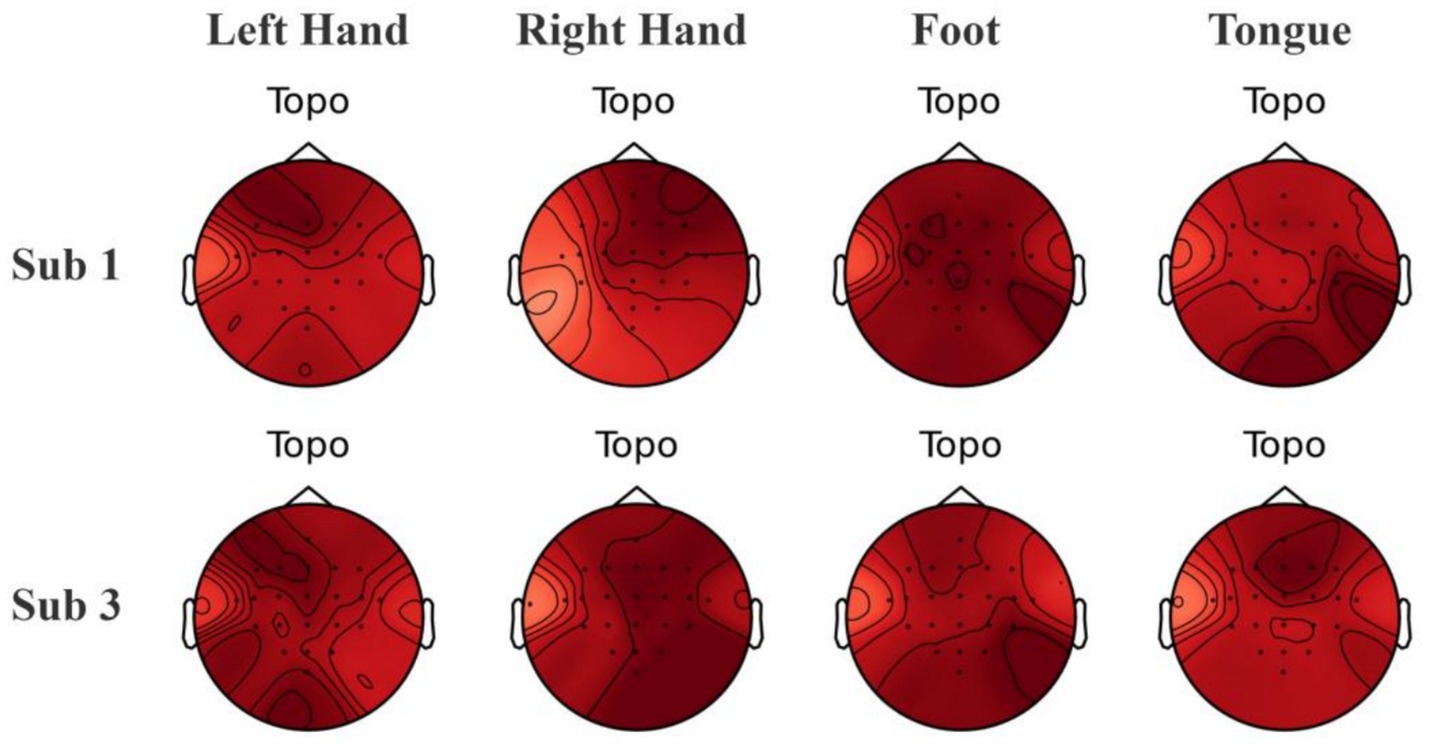 Figure 12. Visualization of brain topography maps of some subjects on the BCI Competition IV 2a dataset.